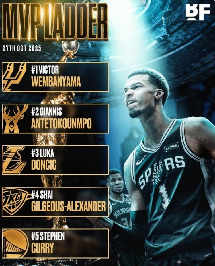 美媒Basketball Forever排出新赛季MVP榜单,详情如下: