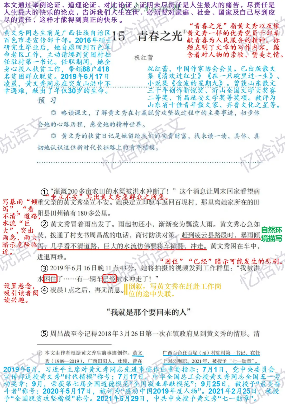 你今天预习了吗? 刷到这条就收藏吧,快点学习起来! 2025年春新版七下语文笔记,超全知识点 点赞收藏关注我呀!不然找不到啦! --------------------------------- [飞吻R] 七年级下册第15课《青春之光》
