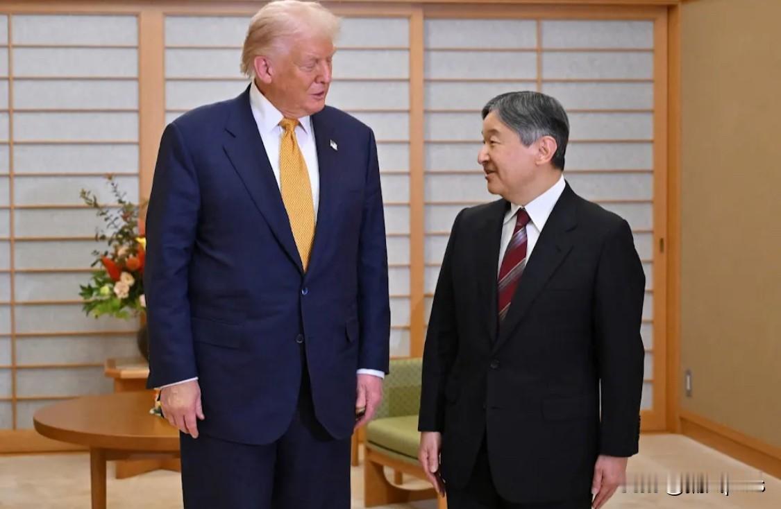 特朗普会见日本天皇德仁。身高差,显示了日本天皇的真实身高,仅162厘米。尽管日本