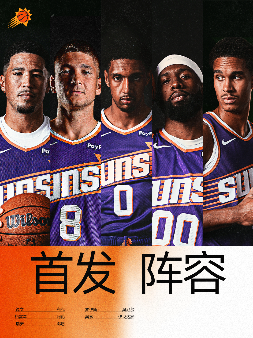 今日首发:🧡德文-布克💜格雷森-阿伦🧡瑞安-邓恩💜罗伊斯-奥尼尔💜奥索