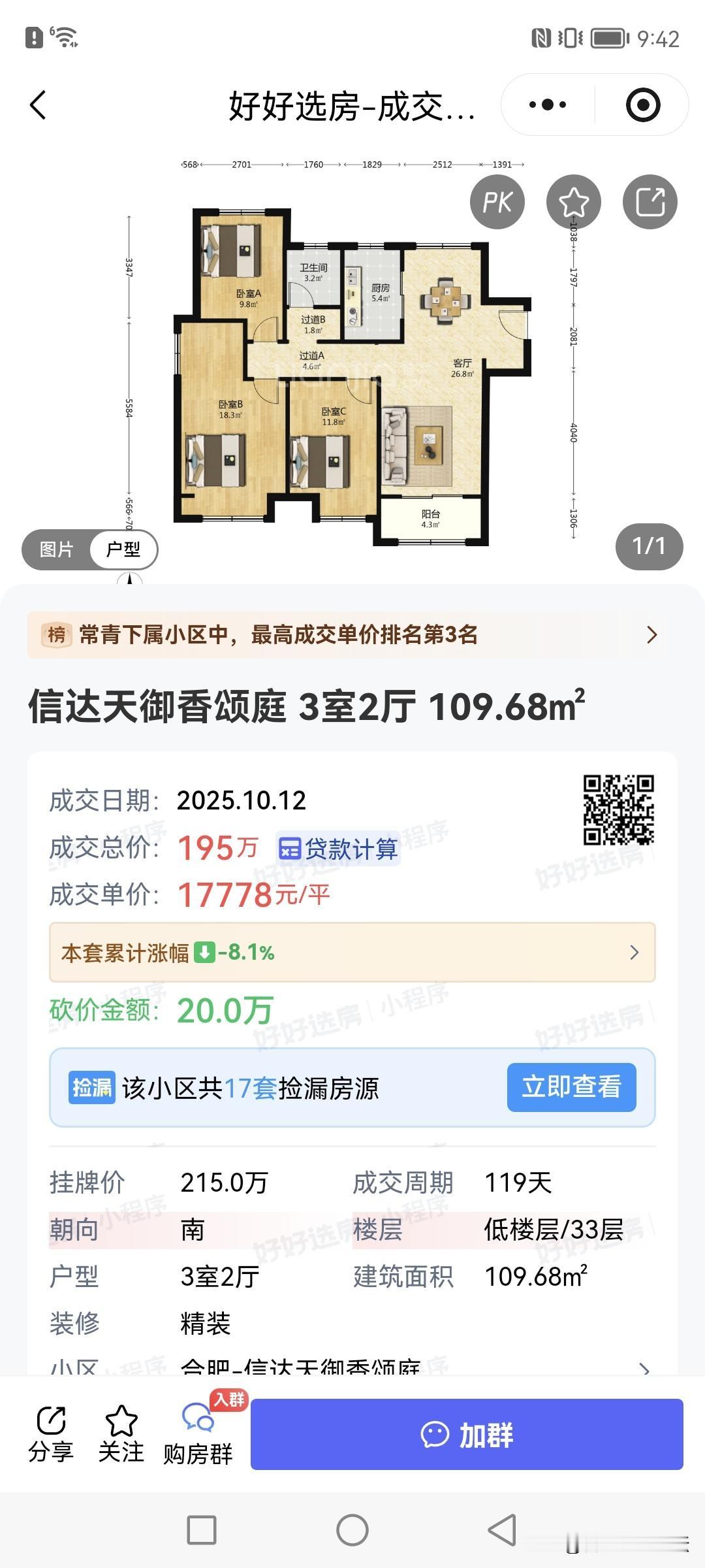 合肥新计容之前的次新房,现在其实也有买的。这批次新房买的时候就是巅峰价格和市场,然后交房后又碰到没有公摊的产品,这些房子能卖到不错的价格也是可以的。 经开的中海上东区单价一万七。肥西的保利拾光年单价一万五。政务东的信达天御五期一万七。淝河奥园的八层洋房单价一万八。