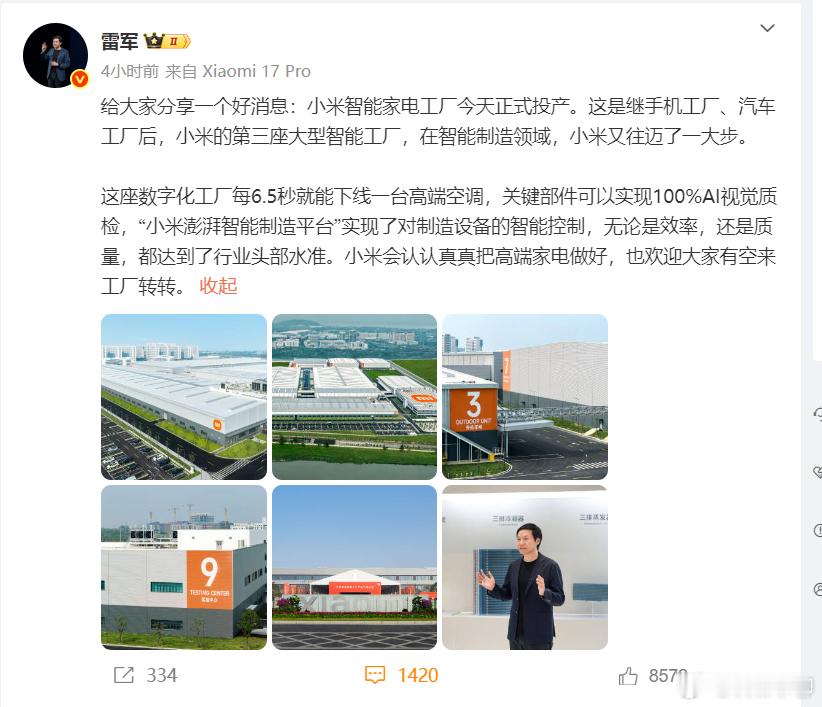 手机工厂,汽车工厂之后,家电工厂也开始投产了。