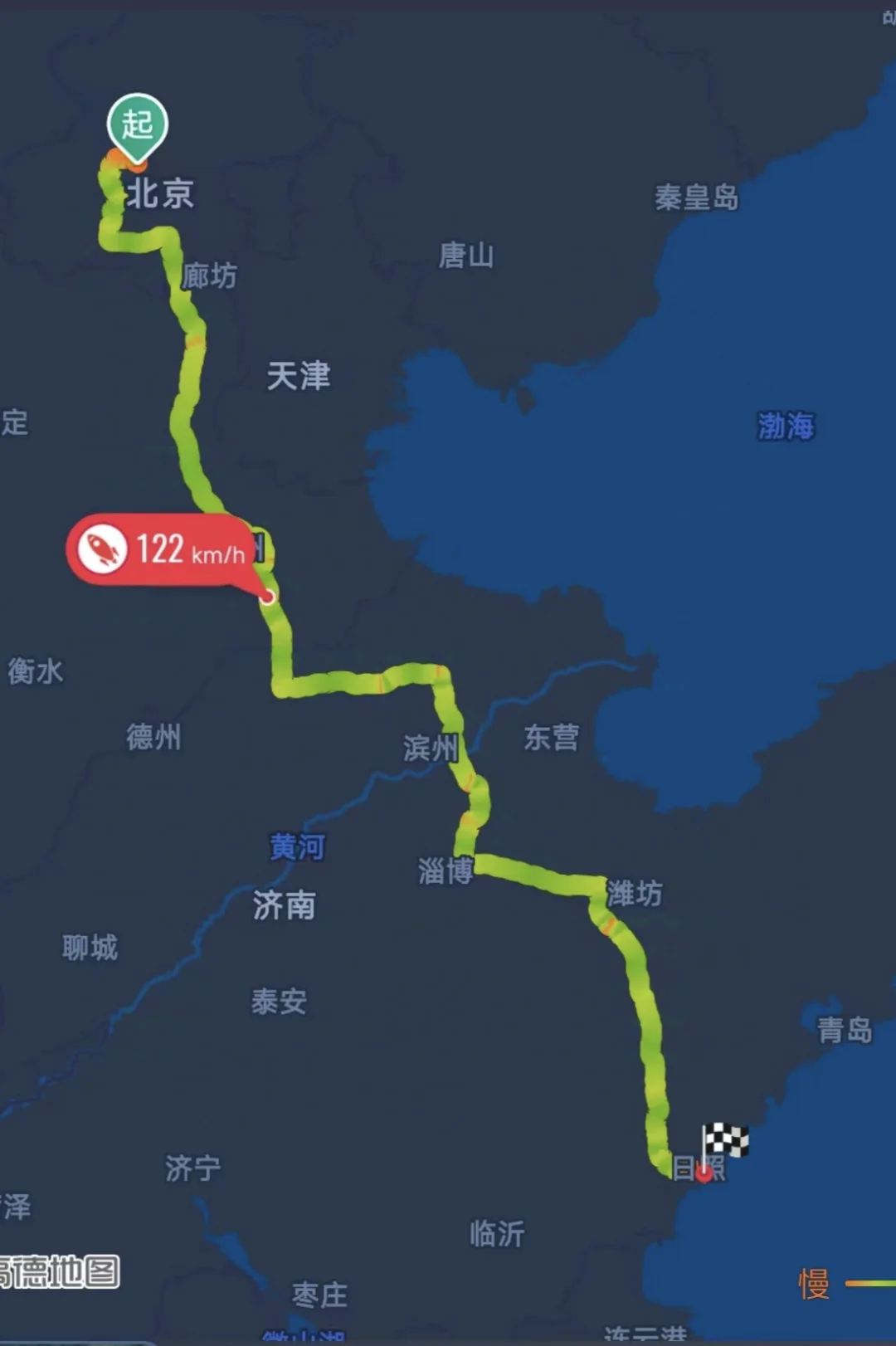 早7点到下午5点。因为山东高速能下不能上,得一天骑完。据说秦滨高速很难走,特地避开。京台→京沪→滨德→沾临→青银→潍日,一天下来感觉都还挺好走的。住日照灯塔景区附近。