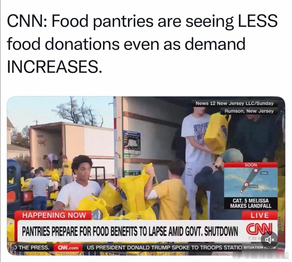 农业部长确认:11月1日起,停发食物补贴,影响4200万人各地免费食物发放机构: