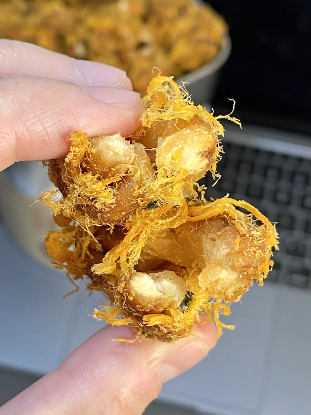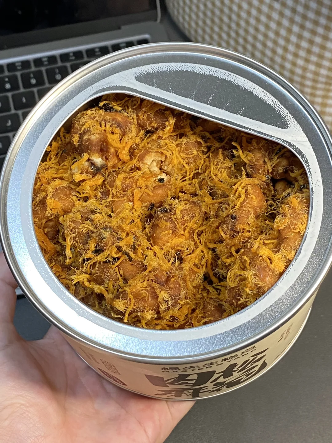 这到底是哪个大聪明发明的 肉松➕麻花的组合真的好牛!! 这一罐里肉松真的多到爆 整体是咸甜口的 每根麻花上都裹满了肉松 吃起来又酥又脆 整体是咸甜口的 下个月发工资我还买!!