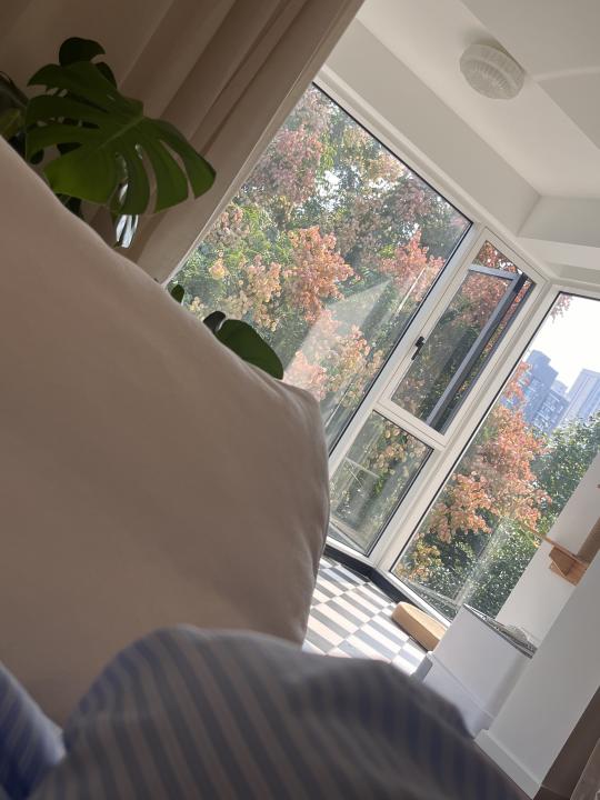 自从住进这个房子之后 窗帘都不爱拉了🌳 其实建筑之间的楼间距挺近的 全靠着大树遮挡隐私 装修封了大阳台 保留了一个小露台链接自然 呼吸新鲜空气 88平的小家,是只属于我的能量场 坐在窗前总能感受到平静 在这个浮躁的世界一方小小安心处~