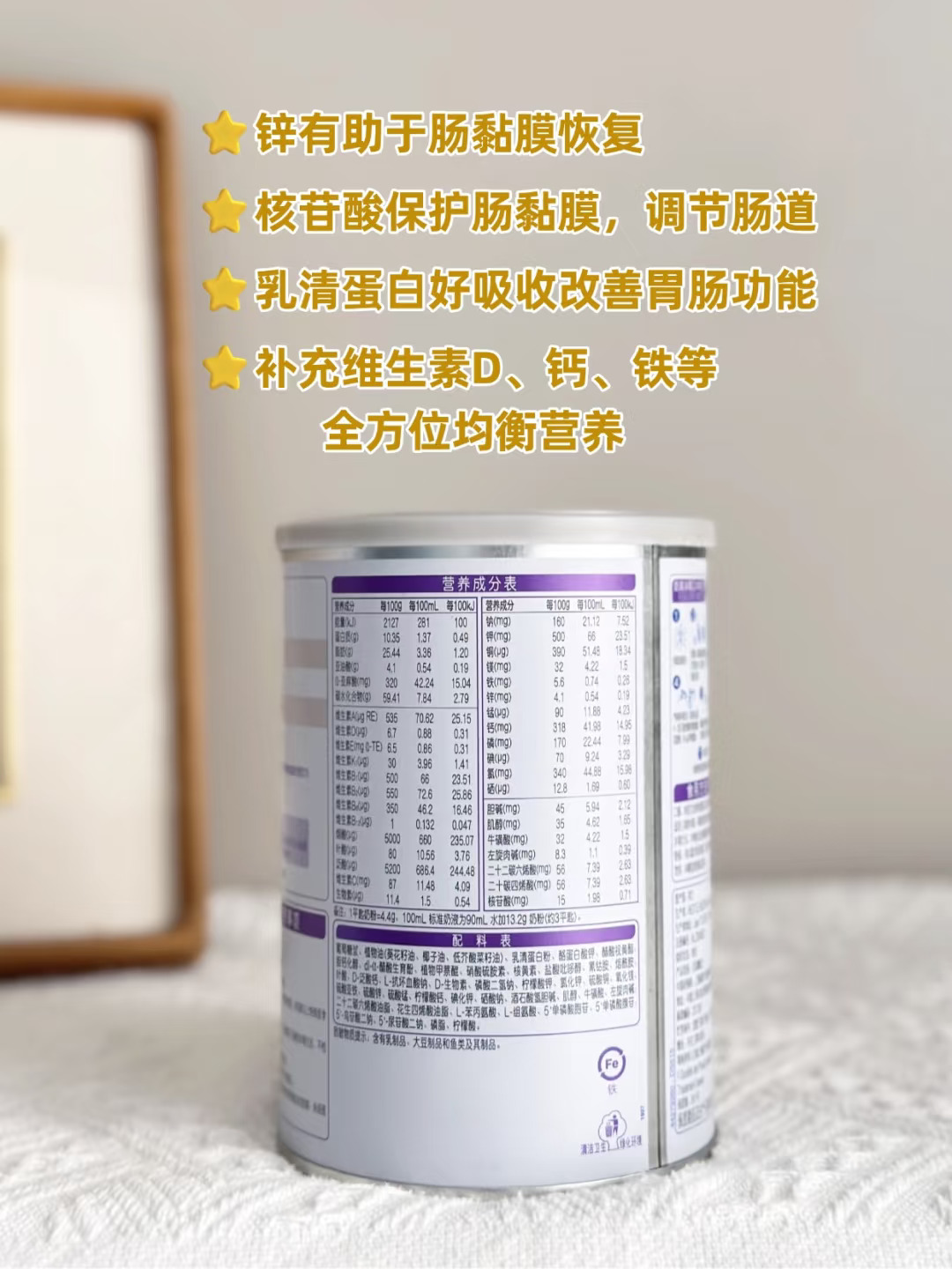 里面有维生素D、钙、铁等营养和矿物质,全方位均衡营养