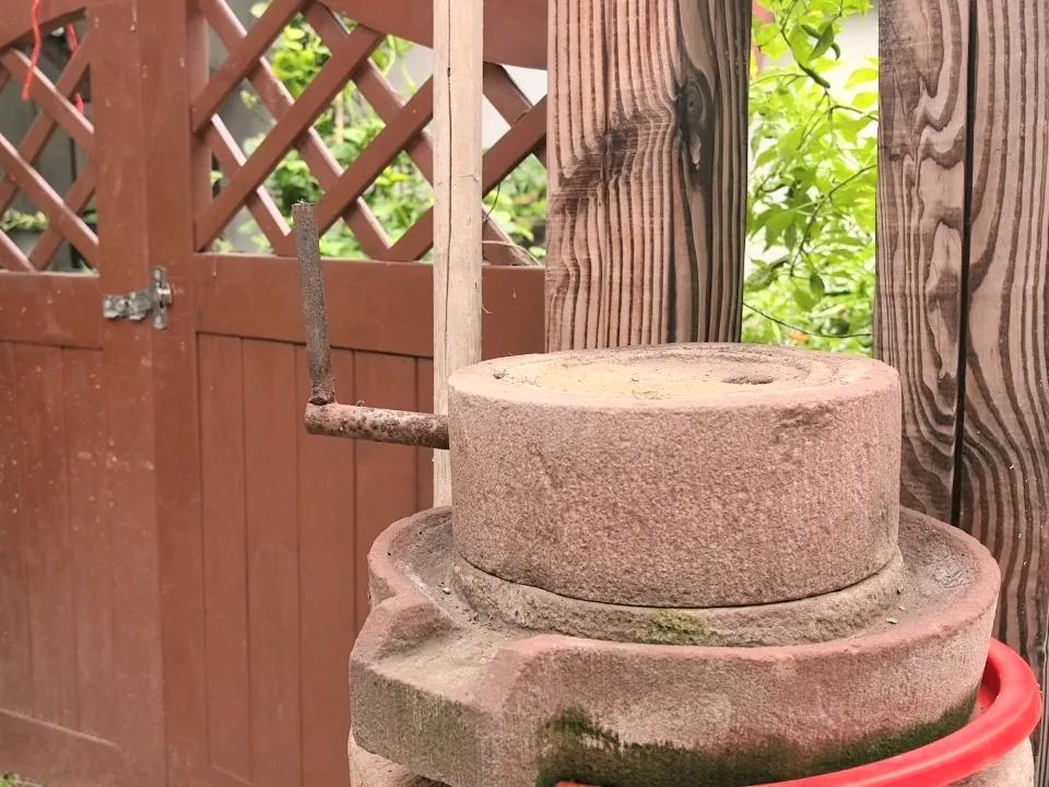 石器时代与现在。你还有记忆?老古粉碎器,今日搅拌机!食在天然莫求精。身在运动耕点田!