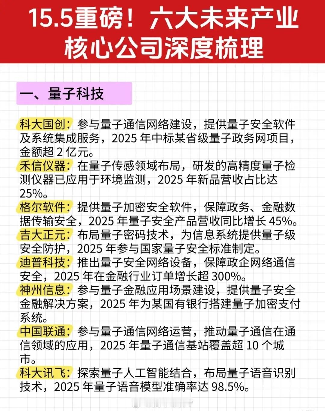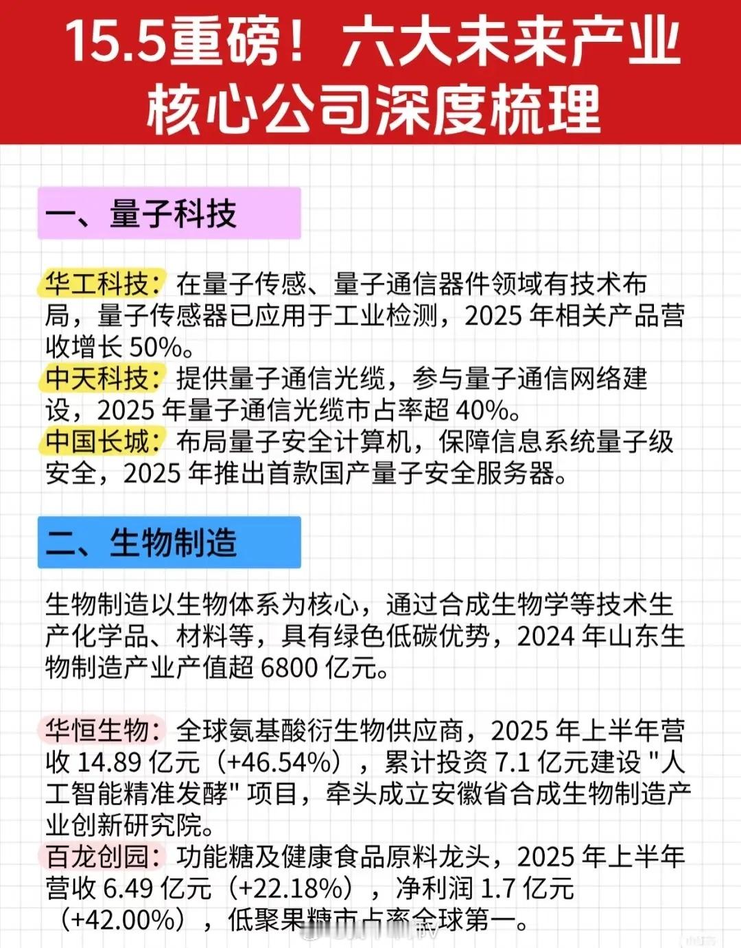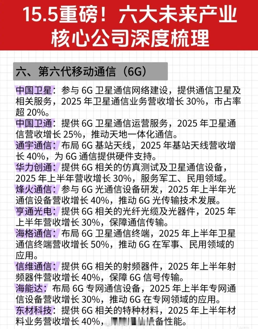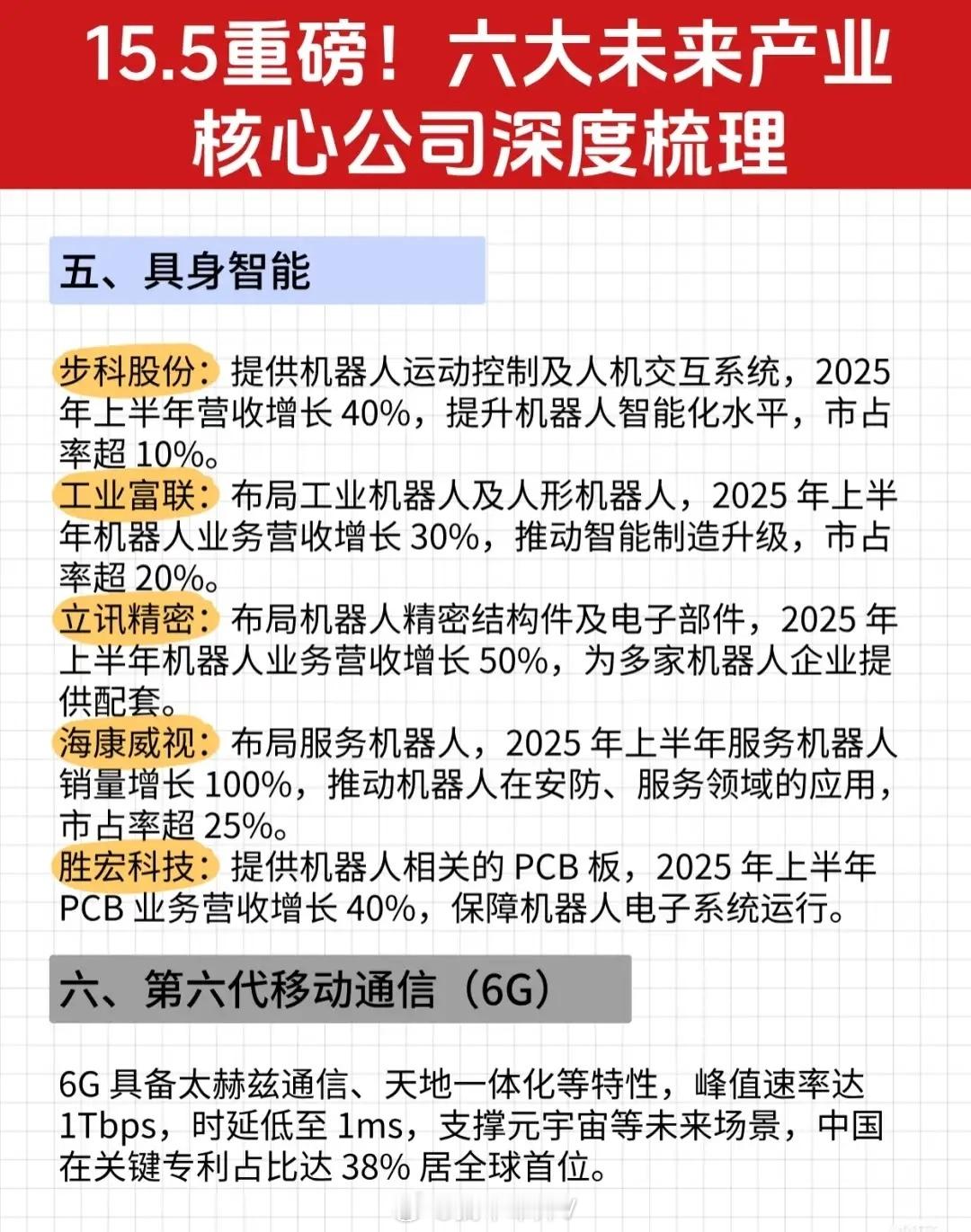 “15.5重磅!六大未来产业核心公司深度梳理”资讯的完整文字总结: