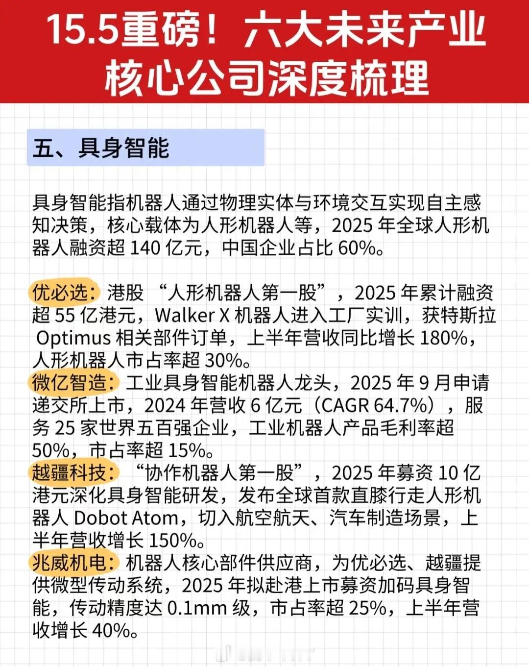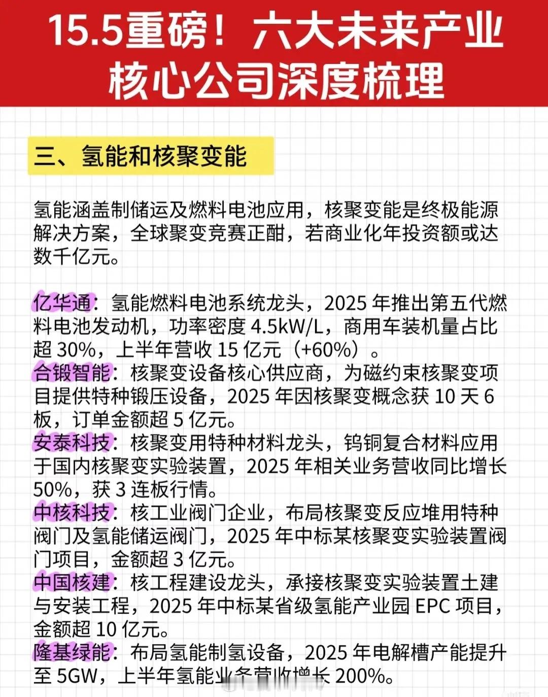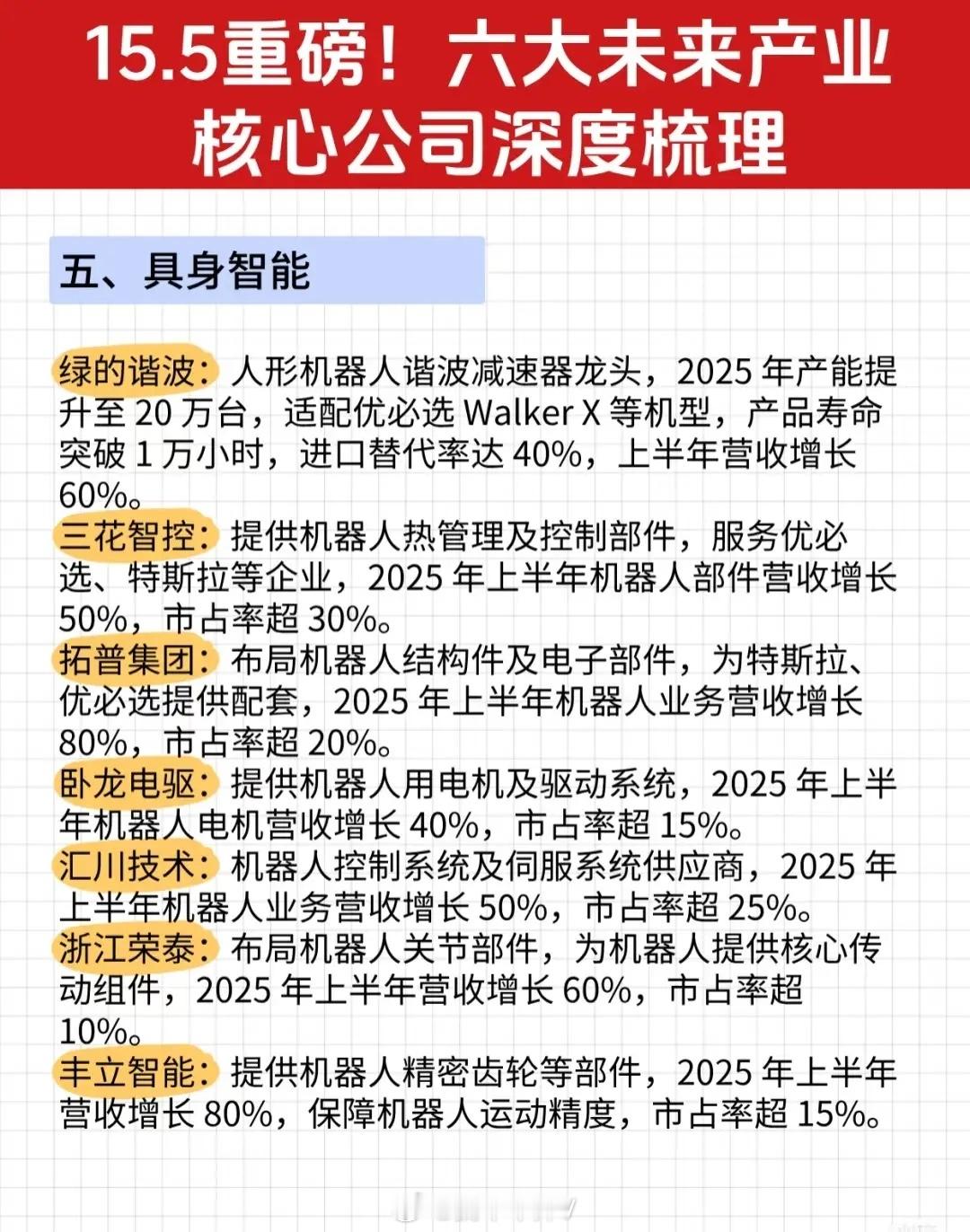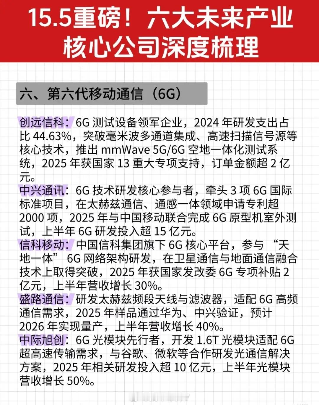 “15.5重磅!六大未来产业核心公司深度梳理”资讯的完整文字总结: