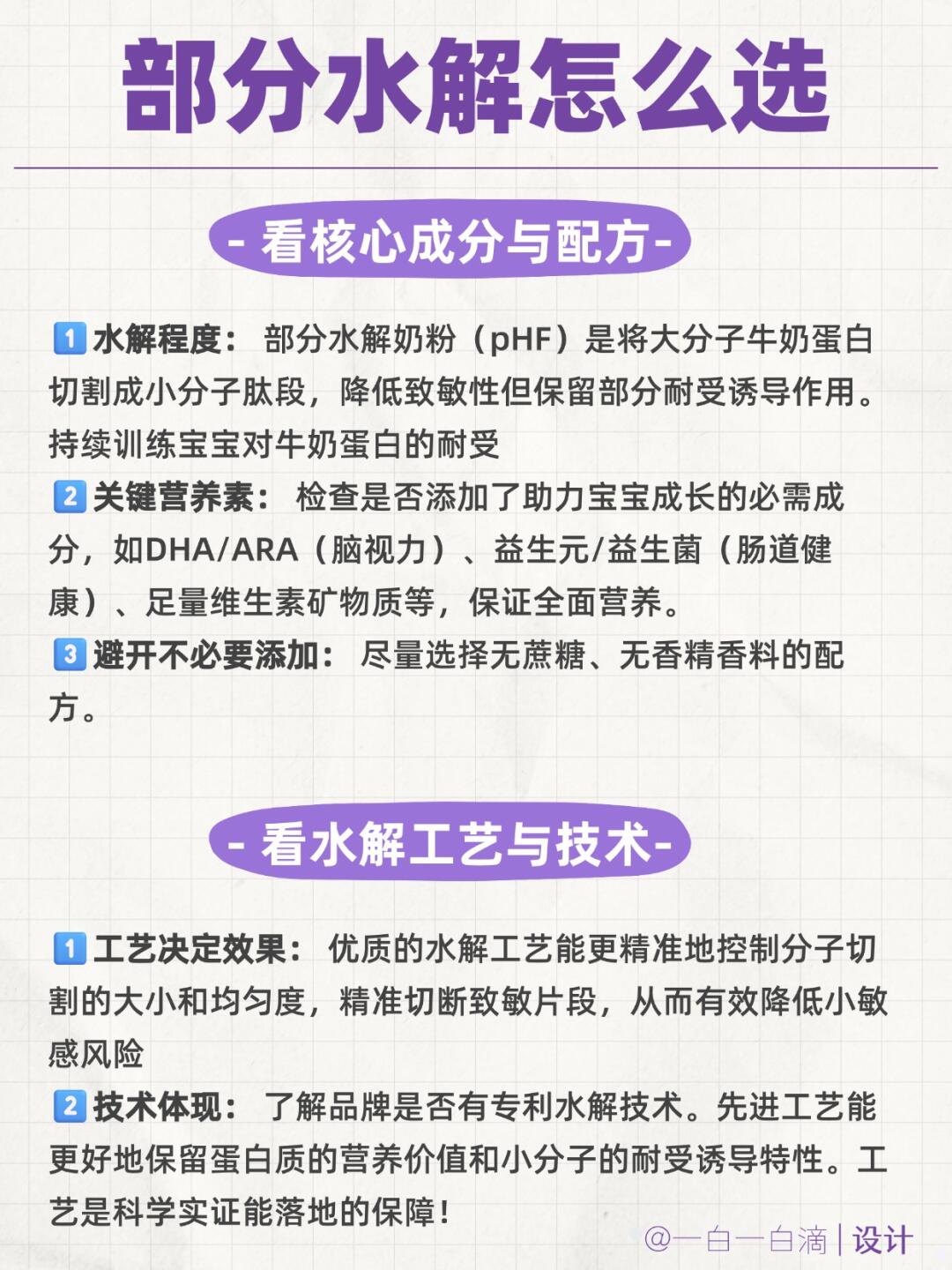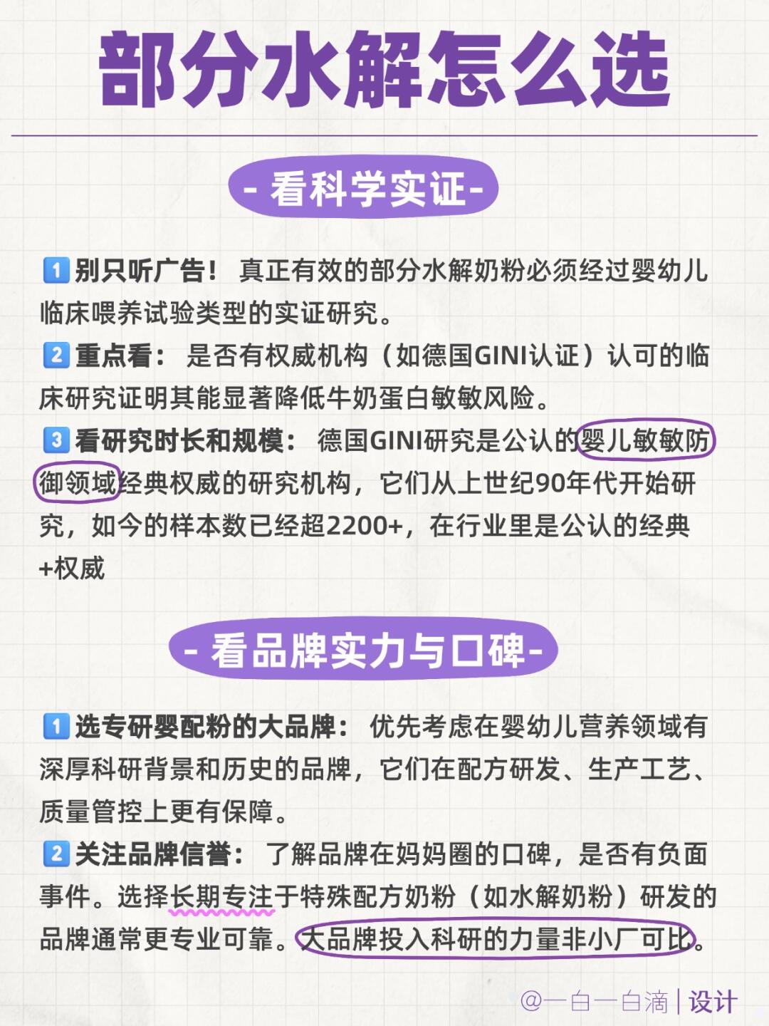 我发现不少宝妈在给小敏感宝宝选适度水解奶粉(也就是部分水解奶粉)时,都不知道从何下手,有经验的妈妈可能会看品牌、看成分,但作为从业7️⃣年的高级育婴师妈妈,我不仅会关注这些,还会重点看科学实证,毕竟实打实的研究才靠谱✅