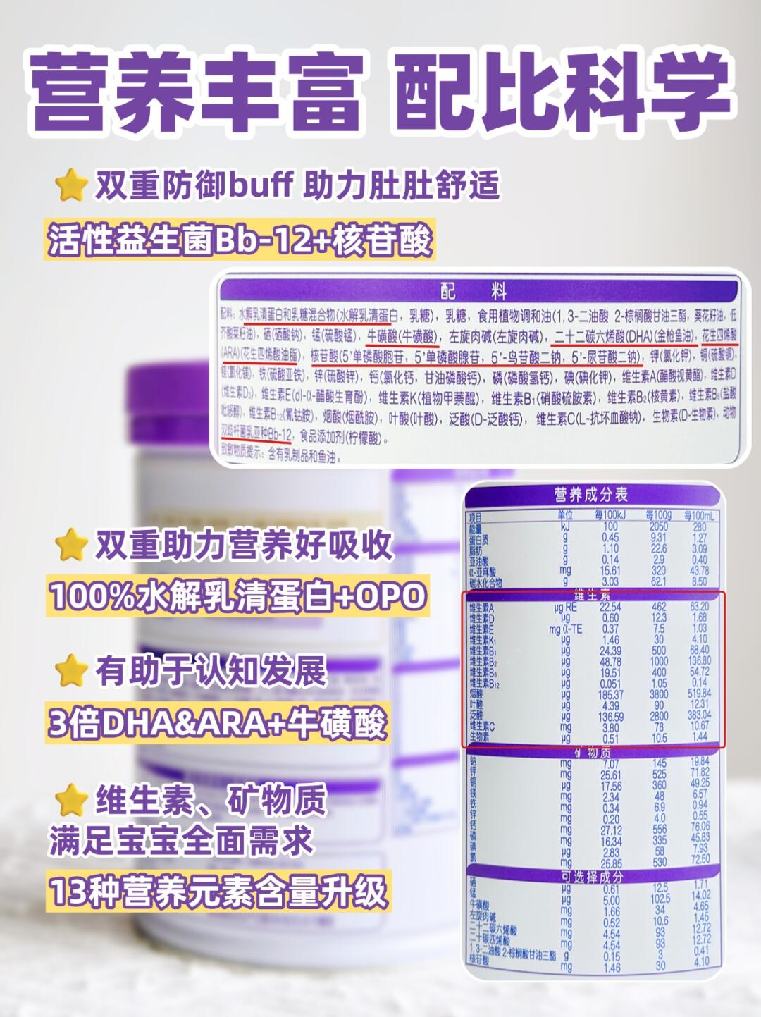 而且超启还是率先通过新国标的部分水解奶粉,里面添加了活性益生菌Bb-12+核苷酸,给宝宝肚肚由内而外的呵护,还有100%水解乳清蛋白搭配OPO,帮助宝宝实现双效吸收,同样有喂养实证证明持续喝可以帮助宝宝4️⃣维成长指标稳稳在线