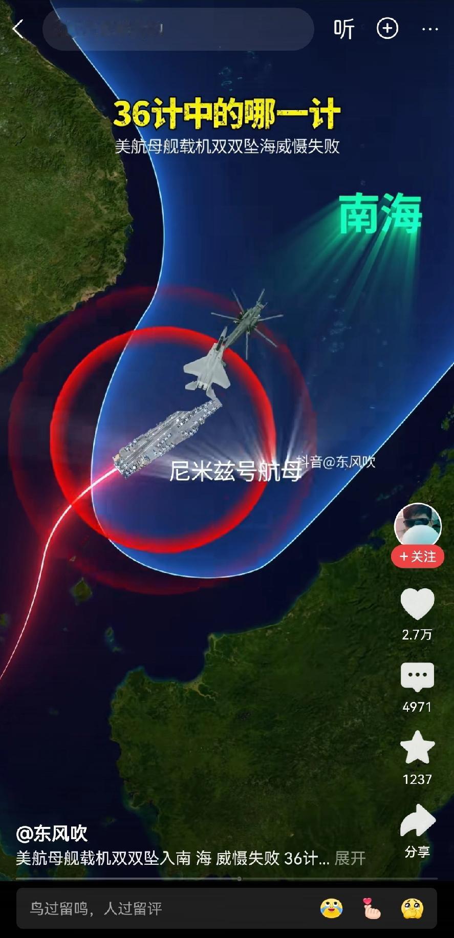 常在河边走,哪有不湿鞋!中国这句古话,老美是学不会,也不知道其中的道理的。一个服役超过五十年的靠老航母,以前全世界耀武扬威的日子一去不返。谁曾想,以他们现在的科技水平,已经不能够支撑老美这么目中无人了,可他们全然不自知。所以,大家看到了今日之后果,这不是自作自受是什么?没沉航母就已经很好了!