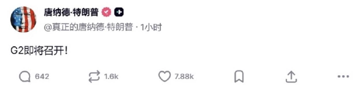 特朗普:“G2即将召开!” 中国与美国的会谈即将开始!