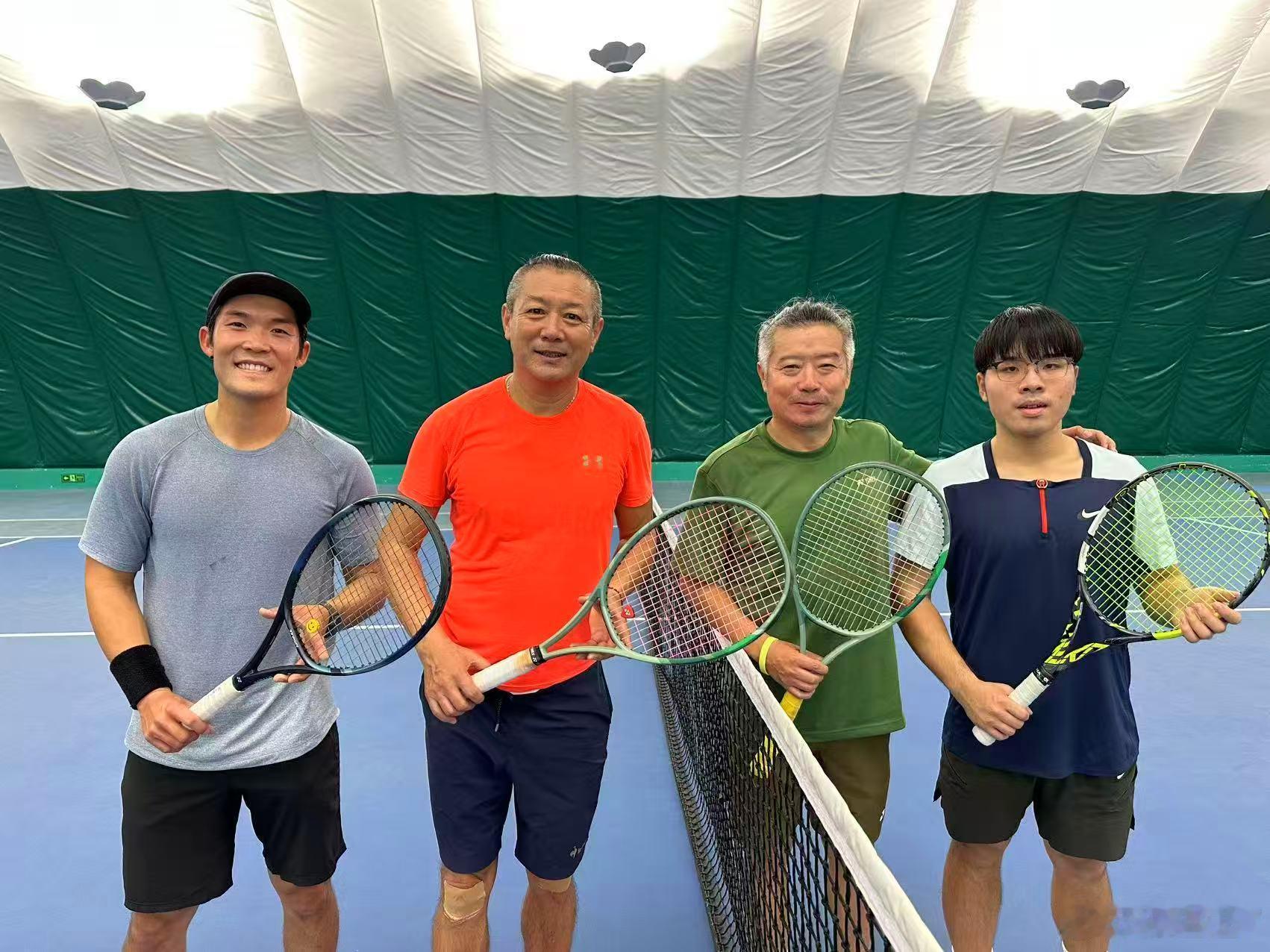 “北航纳班”张总的女发小王姐的女婿Saamy是来自夏威夷贸易岛曾在大学校队效力的D2级选手,这些天来国内旅游休假。为了提高今日一练的训练水平,增强对抗,我特意把在北科大任教、上周日刚在国网拿了“中国体育彩票——2025北京网球大师赛”30+组男双冠军的洋哥及其弟子、北科大现任一哥小徐都叫来一起参训。