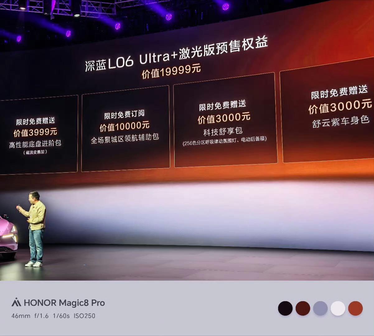 深蓝L06预售价公布,只要13.99万起,刘浩存同款开回家。 入门即高配,没有中低配,还有膨胀金、送大疆Pocket3,会玩。 560 Ultra 激光版:13.99万 670 Ultra 激光版:14.99万 560 Ultra+激光版:15.19万 670 Ultra+激光版:16.19万 从这台车,大家应该可以看到手机玩家入局汽车的优势,价值点极其直观。15万能买到啥?法拉利同款技术;3nm芯片跑分第一,堪比苹果般丝滑流畅车机;比特斯拉好的智驾,同时跟流量密码KPL勾搭上了,可以的。【来自懂车帝车友圈】