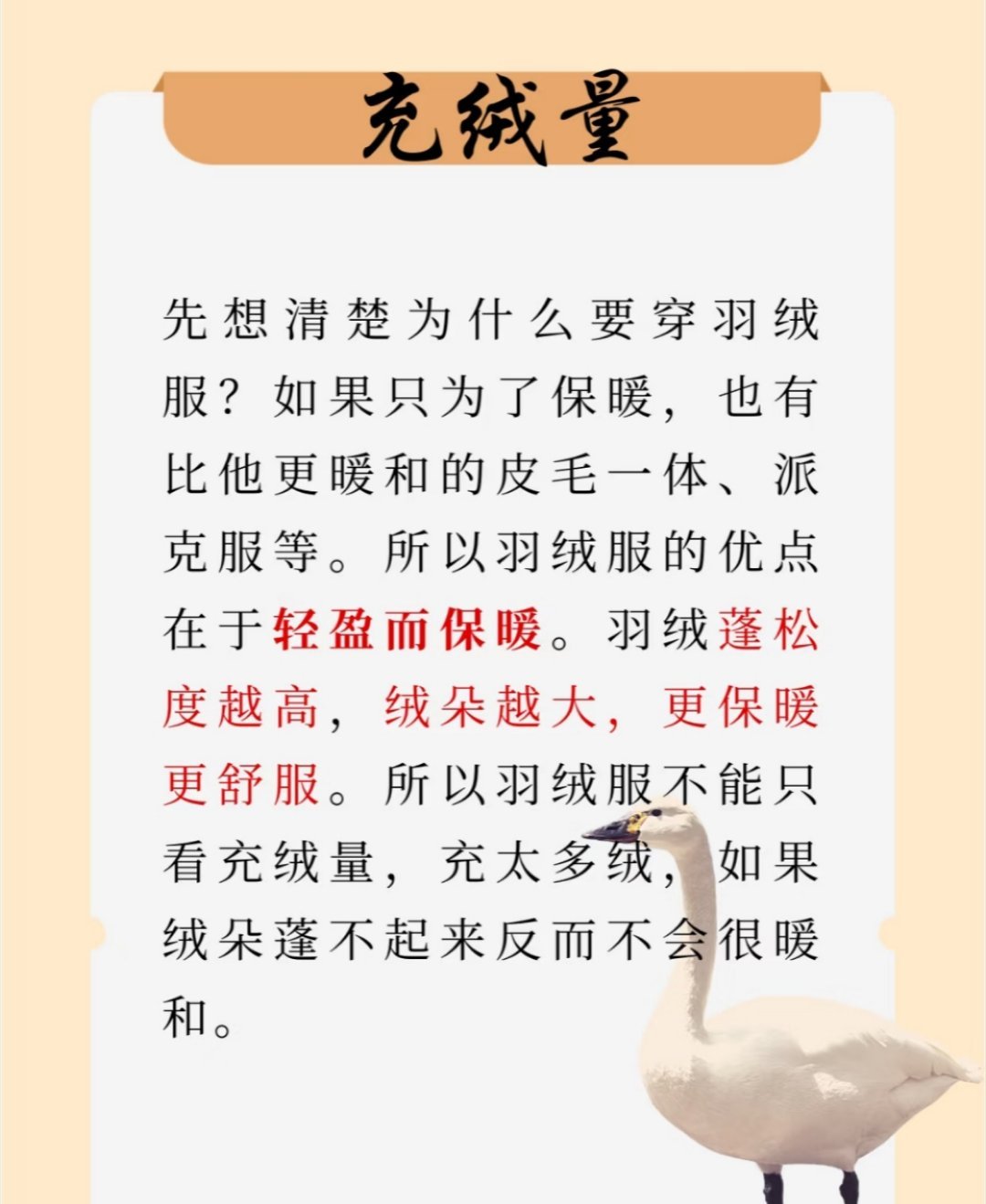 羽绒服充绒量该怎么选,并非越多越好。根据温度需要,轻盈保暖好。双11选羽绒服可以参考这个标准原来买羽绒服不能只看充绒量