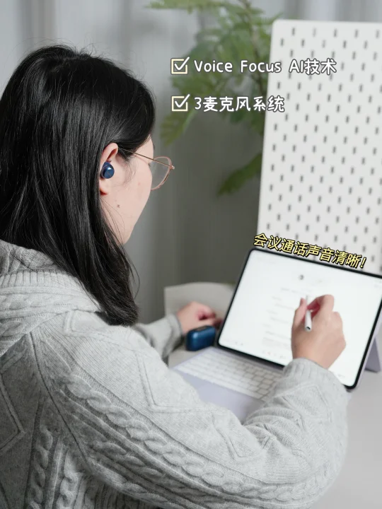 开会我也戴着它,结果被同事夸声音特别清晰!这要归功于它的Voice Focus AI技术和3麦克风系统,即使在嘈杂环境中通话,对方也能听到清晰人声,风声噪音全过滤。