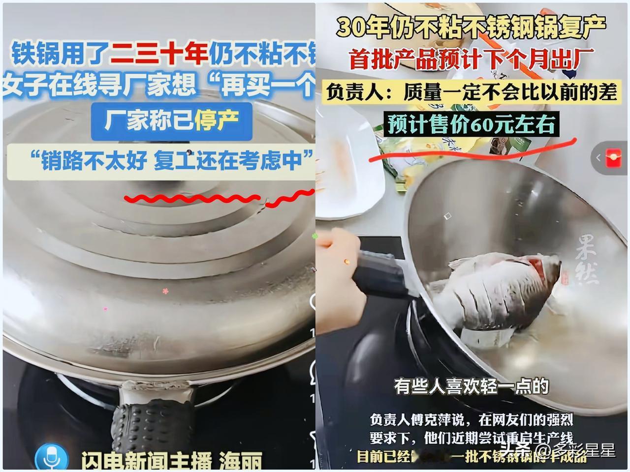 瑞安铁锅的老板太“傻”了! 能用30年的不粘锅重新生产。 定价出炉,老板说了一口锅的居然只要60元! 老板说,很多网友私信他锅很好用,希望能再生产,他表示已经重启生产线了,网友希望锅别太重了,老板也很听劝,会在以前的基础上改进,但是会保证跟以前一样好用。 见过实在的老板,没见过这么“轴”的!瑞安那个做铁锅的老板,简直把“良心”刻进了骨子里。之前火过的那款能用30年的不粘锅,因为网友一句“想再买”,直接重启了生产线,连网友说“锅太重”的小建议都乖乖听着改进,还拍胸脯保证好用度一点不打折扣。 最让人惊掉下巴的是定价,我本来琢磨着这种耐用又听话改进的锅,没个一两百根本拿不下来,结果老板张口就是60块左右!要知道现在随便买个劣质不粘锅都要大几十,用半年就粘锅报废,这老板倒好,几十年不涨价,还把品质焊死在高点。 说他“傻”吧,他傻得让消费者安心;说他精明吧,他又不按行业套路赚快钱。其实这哪是傻,是把“做长久生意”的道理悟透了——比起赚一时的暴利,留住老百姓的信任才是最值钱的买卖。 你们觉得这老板是真“傻”还是大智若愚?要是换你,会为这份实在买单吗?来评论区聊聊你的看法!