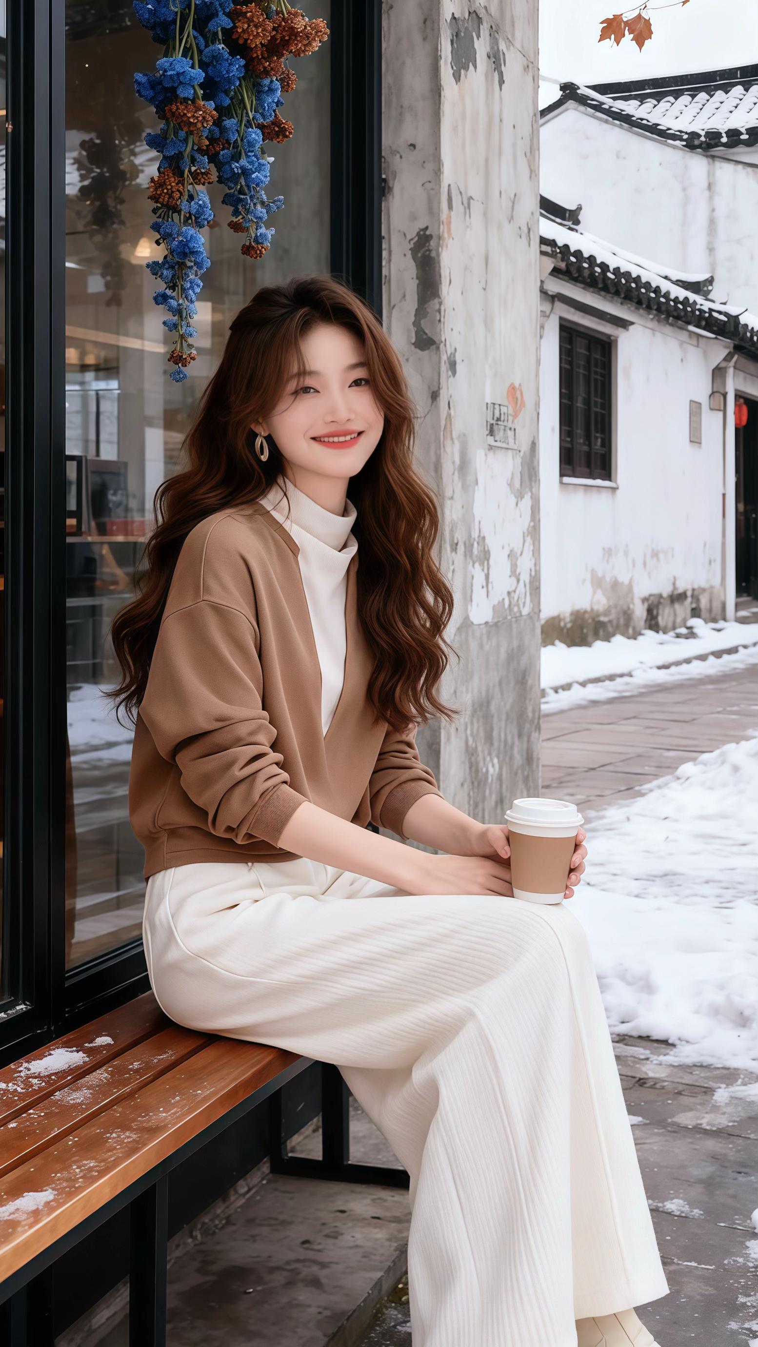 《焦糖色冬日:设计师林晚的穿搭与生活双向奔赴》 初雪覆盖的艺术工作室...