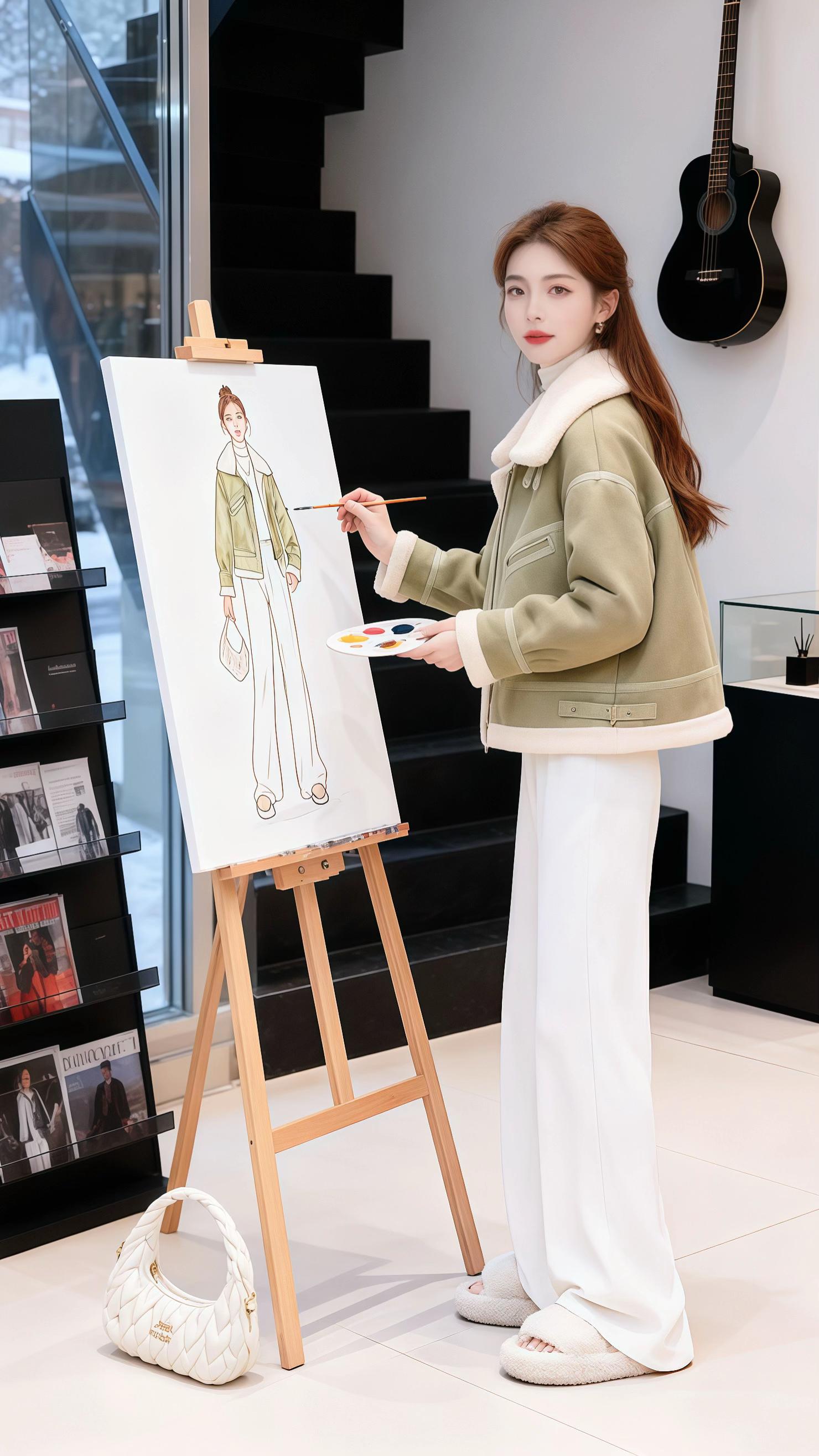 《焦糖色冬日:设计师林晚的穿搭与生活双向奔赴》 初雪覆盖的艺术工作室...
