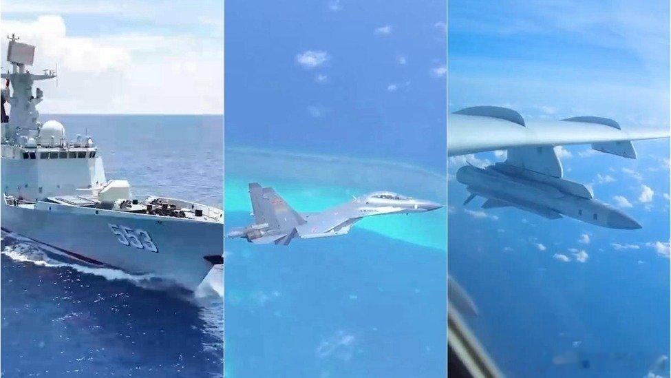 凤凰新闻【南部战区出动军舰、战机、轰炸机在黄岩岛战备警巡,画面曝光】10月以来,中国人民解放军南部战区组织海空兵力,持续加强黄岩岛领海领空及周边区域战备警巡,进一步强化管控力度,有效应对各...来自