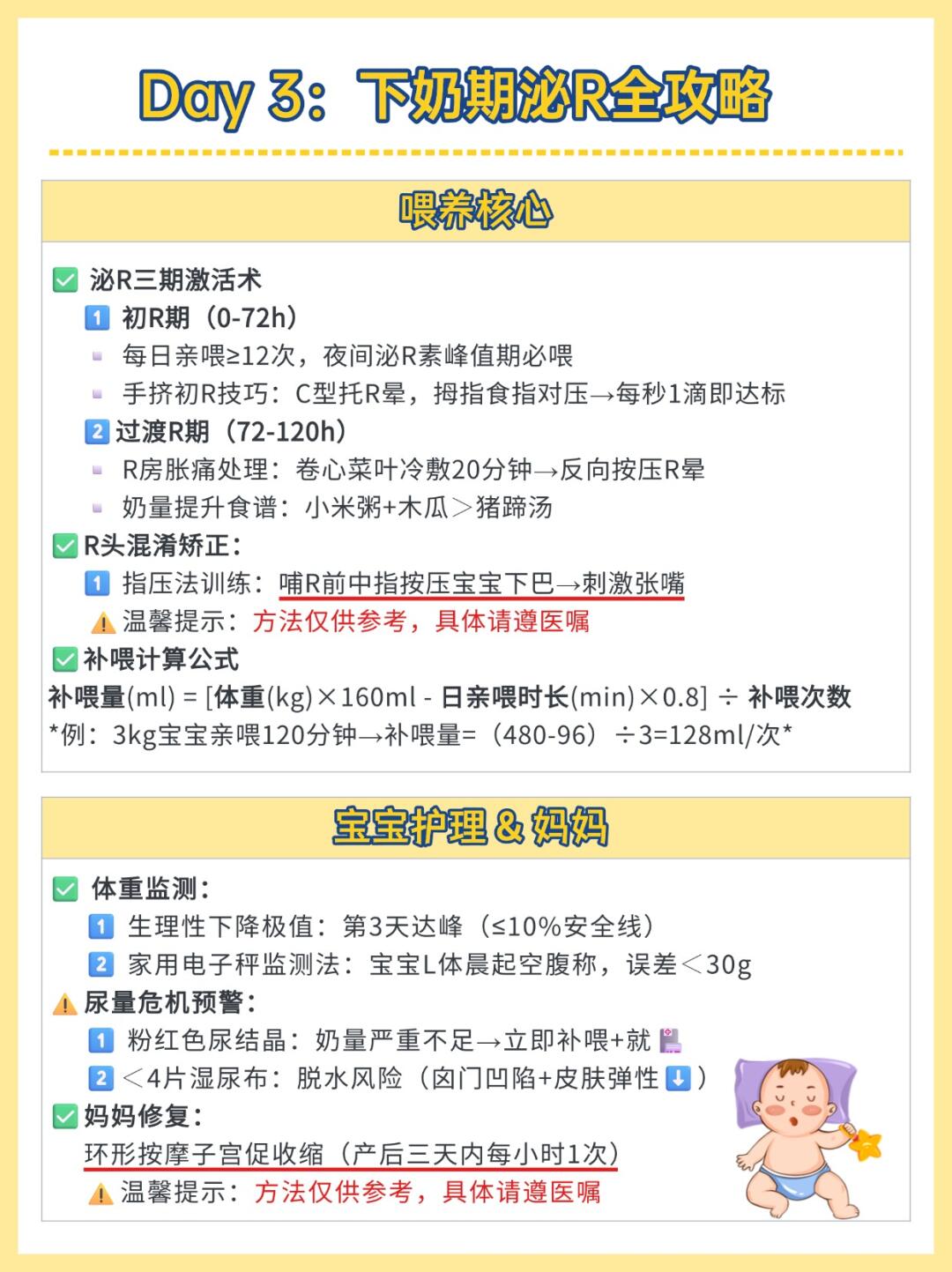 🧮 奶量公式: 体重(kg) × 150ml ÷ 8次(例 3kg 宝宝:56ml/次)