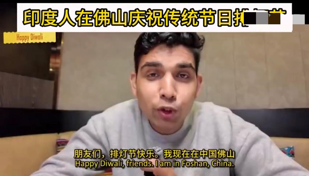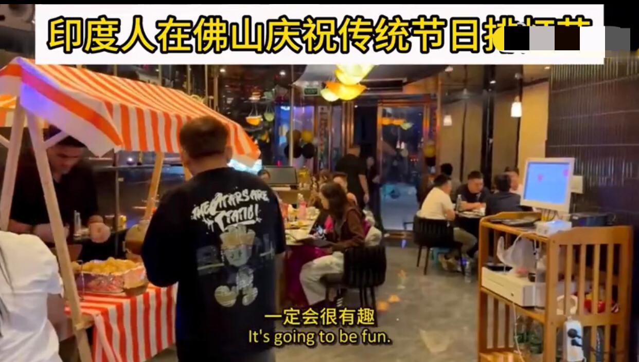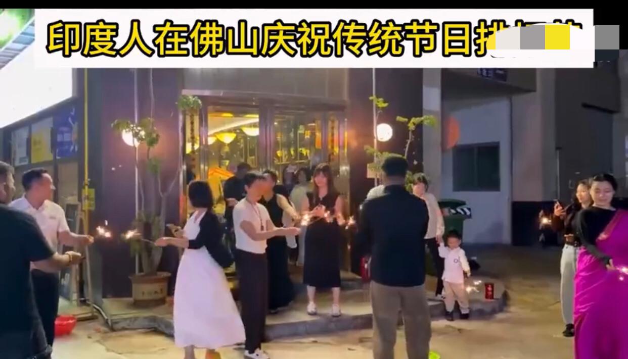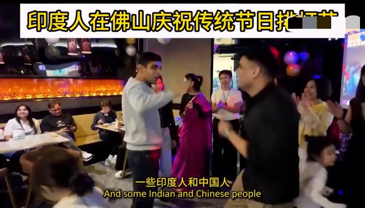 印度人在广东佛山和当地人一起庆祝印度的传统节日排灯节。 印度网友:“朋友们,排灯节快乐!我现在在中国佛山,一些印度人和中国人,准备在一家餐厅庆祝排灯节,这一定会很有趣。”
