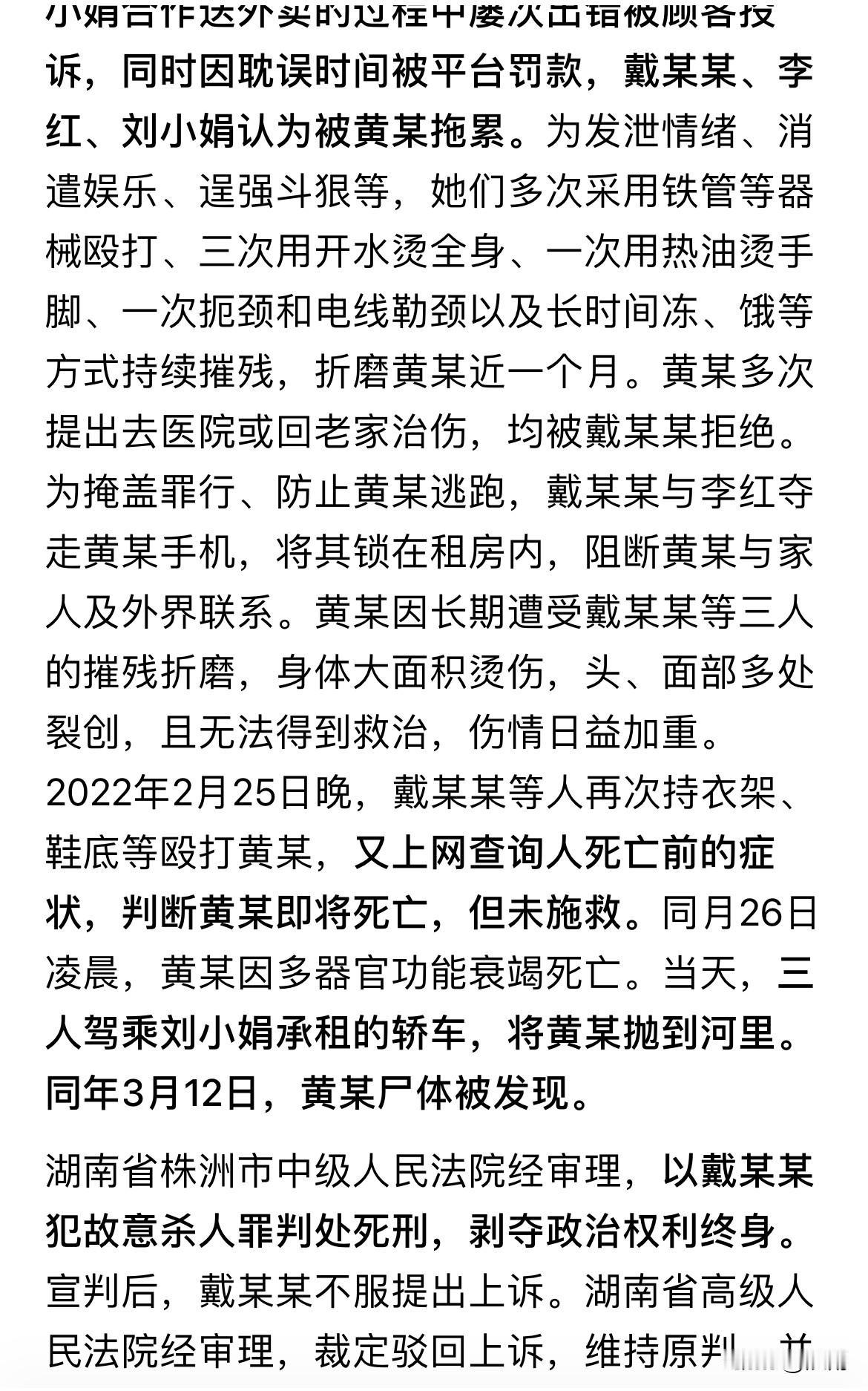 这是一个罪犯被判了死刑,人们仍然意难平的案件。 铁管器械殴打,电线勒脖子,冻,饿,开水烫全身,热油烫手。持续折磨了受害者一个月,导致受害人器官衰竭而死亡。然后把尸体抛进了河里。 这已经不能用坏来形容了,这是人性的变态和扭曲。 很难想象的到,这令人发指的恶劣行径是三个20岁左右涉世未深的“小屁孩”的所做所为。 早早辍学的他们,不仅好吃懒做,还染上了赌博的恶习。 持续一个多月的罪行,三人但凡有一人良心发现,停止施暴,也不会产生如此的让人痛恨的结果。 而最终一人死刑,一人无期,一人有期的审判结果,让人觉得是“差强人意”了。