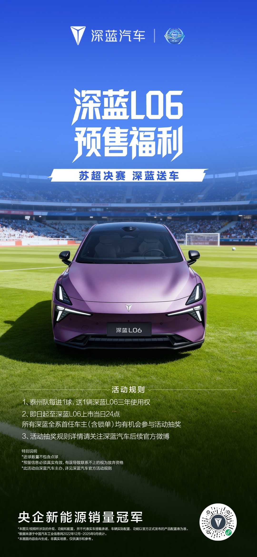 深蓝汽车深蓝全球通公路磁悬浮深蓝L06与泰州共谱传奇蓝图泰州进1球深蓝送1车2025苏超总决赛