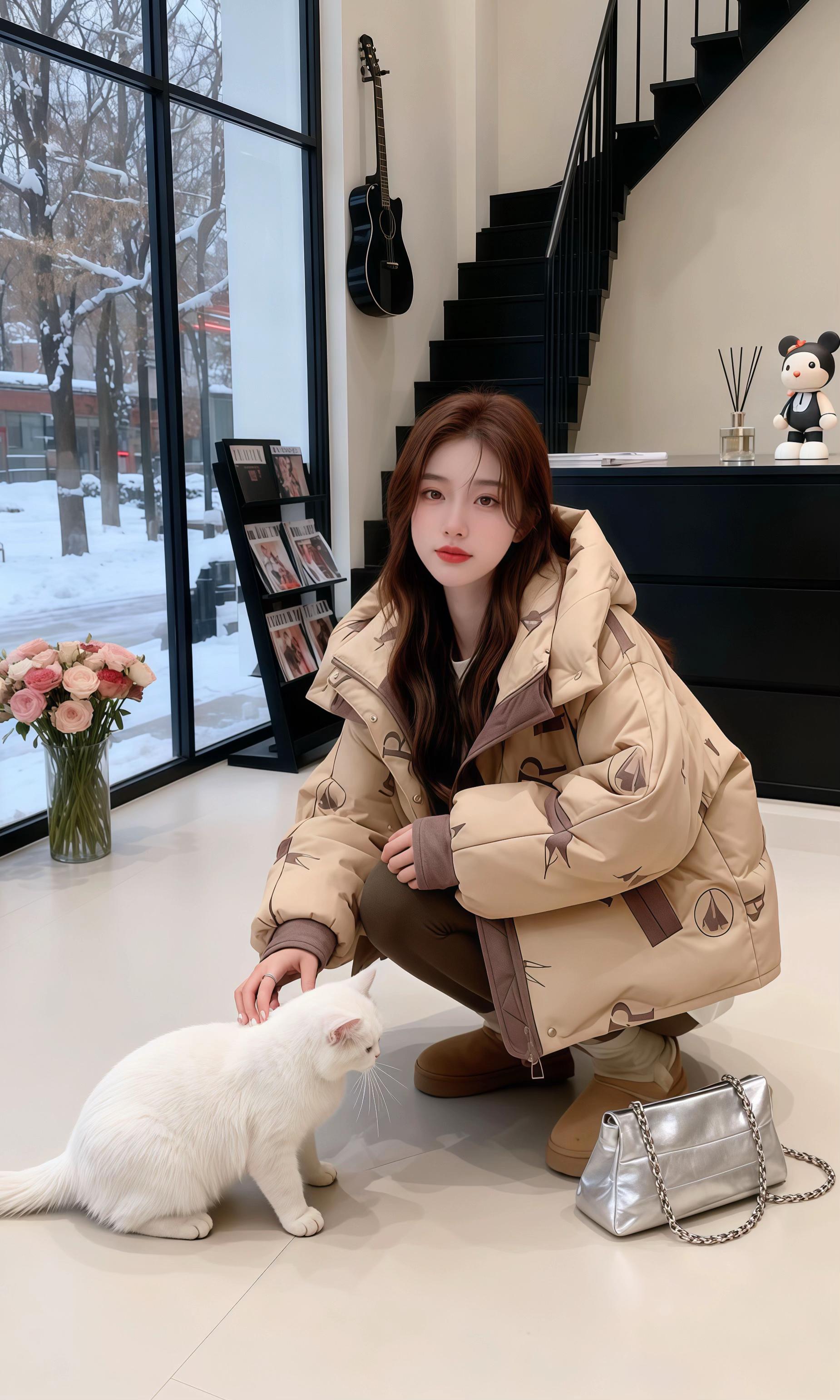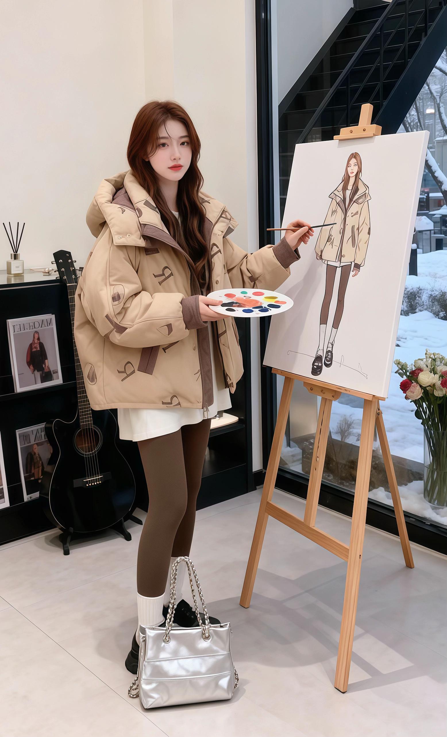 《焦糖色冬日:设计师林晚的穿搭与生活双向奔赴》 初雪覆盖的艺术工作室...