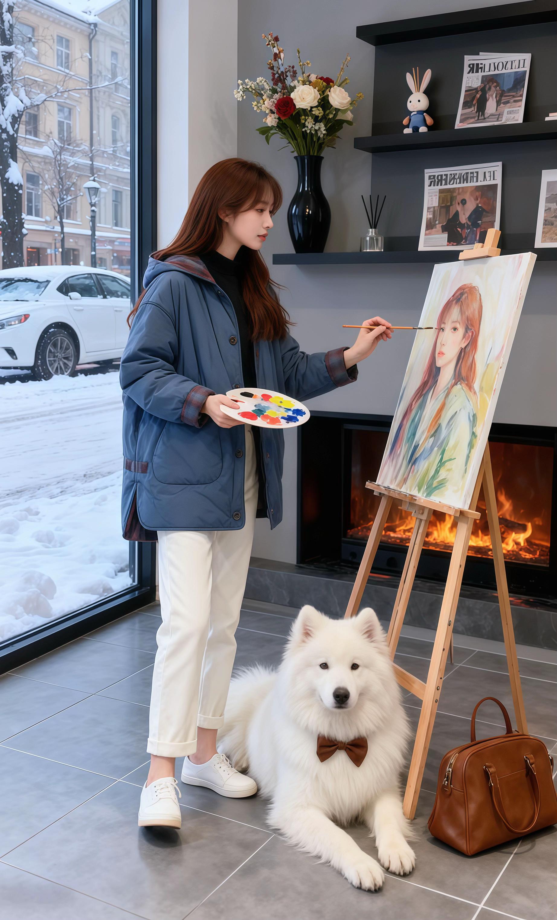 《焦糖色冬日:设计师林晚的穿搭与生活双向奔赴》 初雪覆盖的艺术工作室...