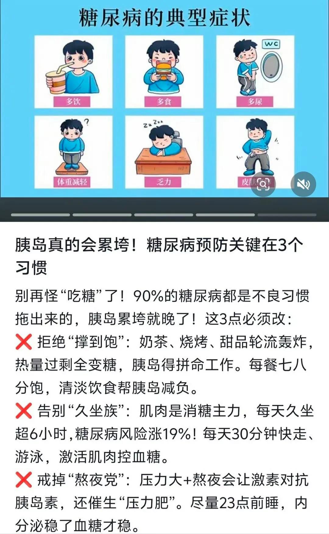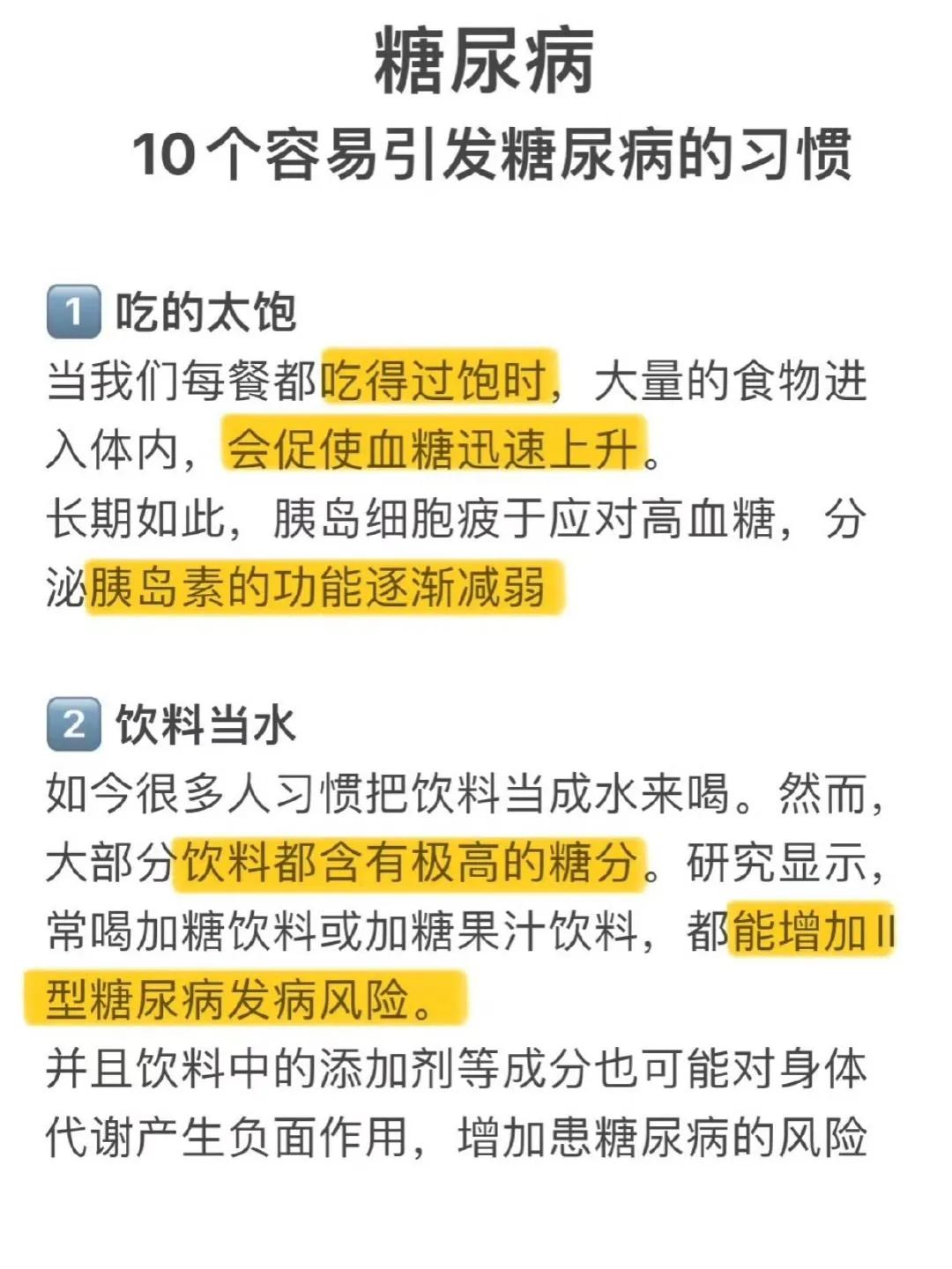 糖尿病 ≠ 吃糖吃出来的! 很多人以为糖尿病是“糖吃多了”的结果,其实不完全对! 真正让胰岛细胞受伤、负担过重的,往往是这3个坏习惯: ❌ 经常熬夜 ❌ 久坐不动 ❌ 暴饮暴食 👉 想要远离糖尿病,不是完全不吃糖,而是学会规律作息、适量运动、均衡饮食。