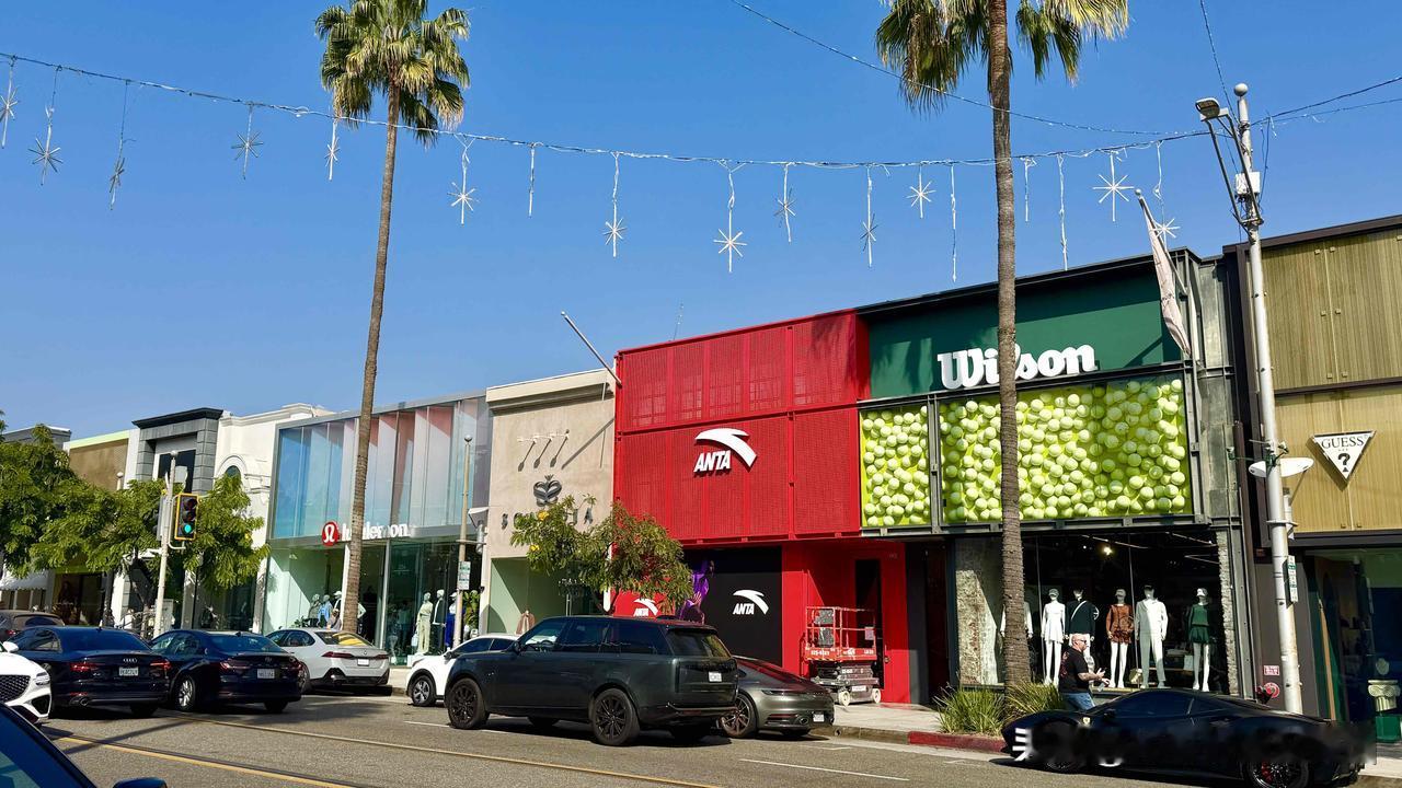 安踏专卖店 开进了比佛利的三角商业区。 中国红的色彩很抢眼! @安踏体育官方 安踏品牌专卖店