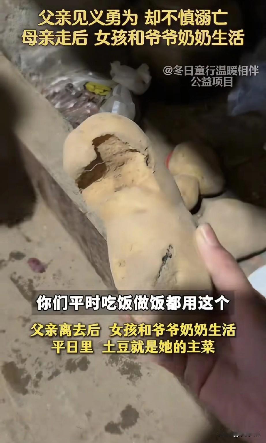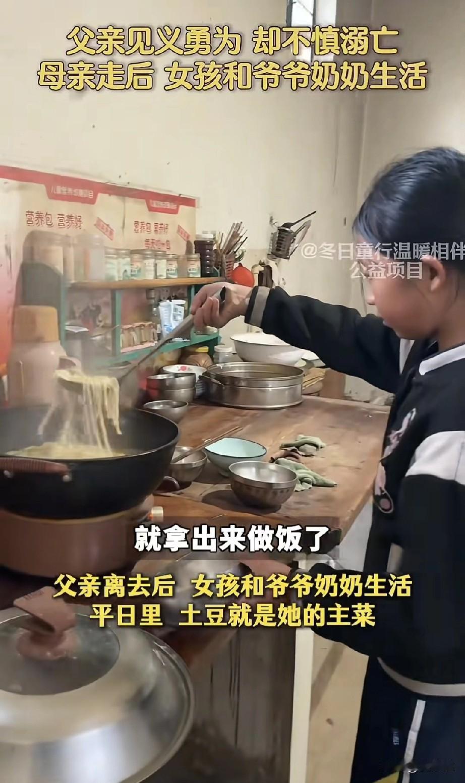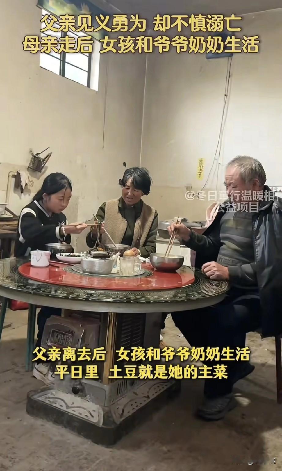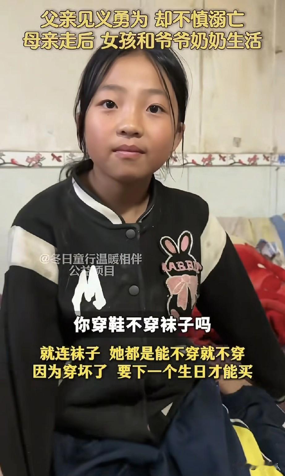 “让人心疼!”女孩父亲因为见义勇为而溺亡,母亲拿到赔偿后离家出走,留下年幼的女孩和爷爷奶奶相依为命,当志愿者走进她家时,只见家徒四壁,空空荡荡,只有女孩瘦小的身影在抢着做家务。志愿者问她吃过最好吃的东西是什么,她回答:“方便面”,这许多人眼中的垃圾食品竟是她记忆中唯一的美味,每天土豆当主菜,衣服只有过年时叔叔给买身新的,因为怕穿坏袜子,所以只能光脚穿鞋。面对这样苦难的生活,女孩没有抱怨,每天晚饭后都给爷爷奶奶捶腿捶背,上学也是刻苦努力,坚信知识能够改变命运! 我觉得经济物质上可能孩子还能承受,因为有爷爷奶奶和叔叔,她自己总有长大的一天,可以通过自己努力改善,主要是精神上没有爸爸妈妈的爱,这才是一生都难以补偿的。希望女孩坚强下去!