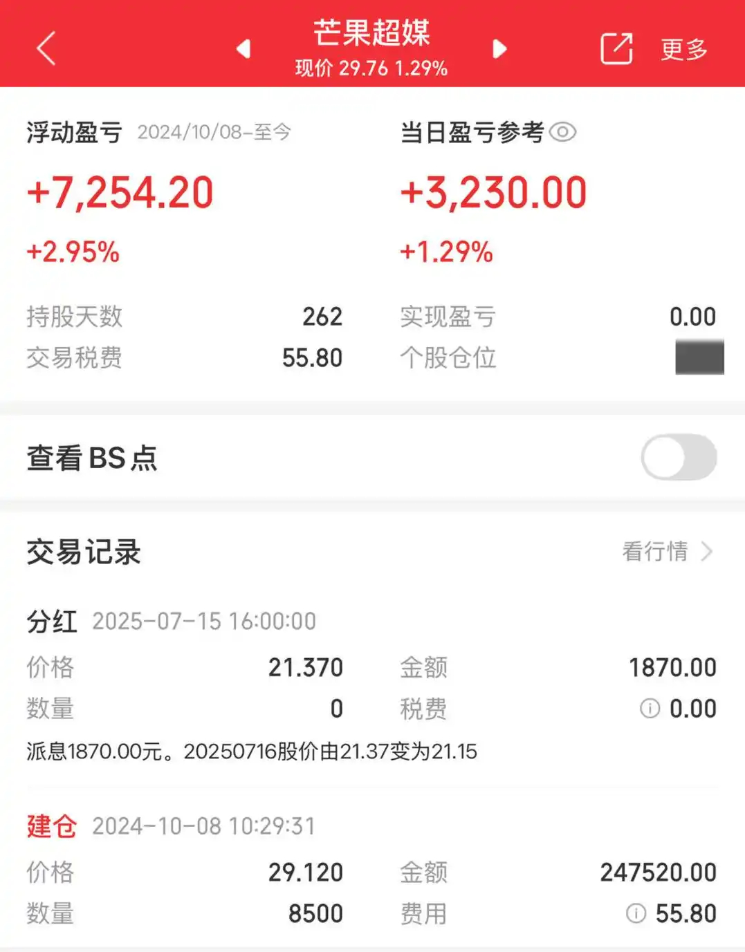 【#蒲熠星回应通告费#】#蒲熠星买了芒果股票#11月3日,有娱乐博主#曝男艺人要6位数通告费被平台封杀#,有网友猜测说的是蒲熠星和芒果TV。11月3日下午,蒲熠星发文回应并带了#蒲熠星 通告费#词条,表示自己是芒果超媒的股东,作为股东希望企业经营得越来越好,不希望平台放任各种莫须有的传言不处理,针对外界关注的合作分歧问题,蒲熠星坦言,双方在部分合作内容上存在商业层面的分歧实属正常,“成年人的世界本就充满不同角度的选择”。此外,蒲熠星还在评论区晒出自己持有的芒果超媒股票截图。截图显示,他持股天数已有262天,共买入了价值247520元的股票,目前浮动盈亏为7254.2元。