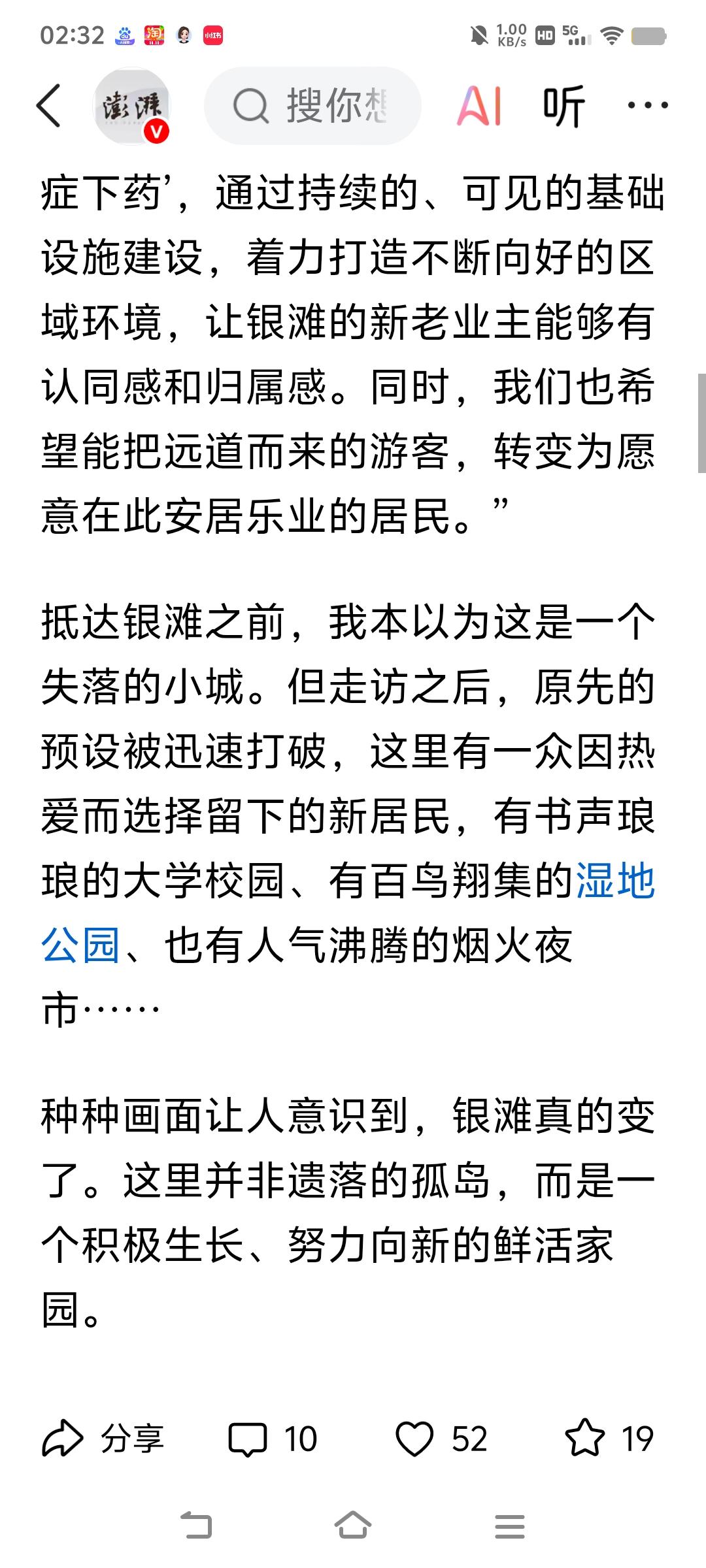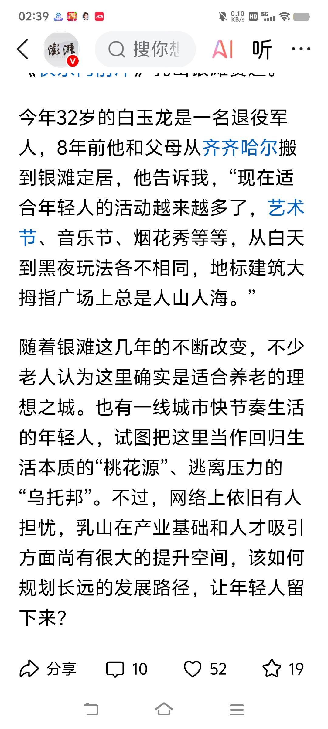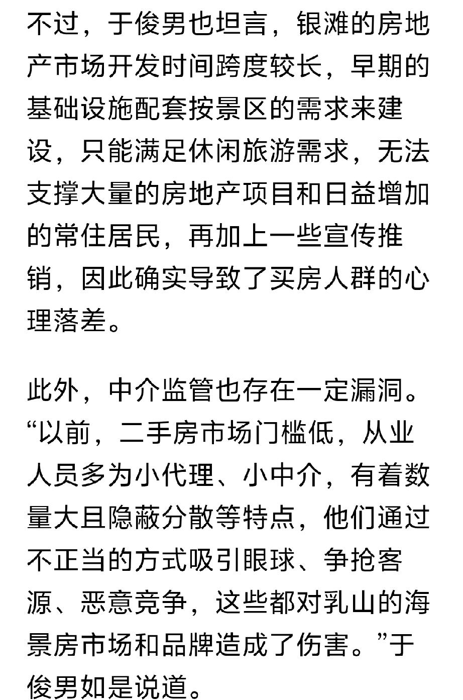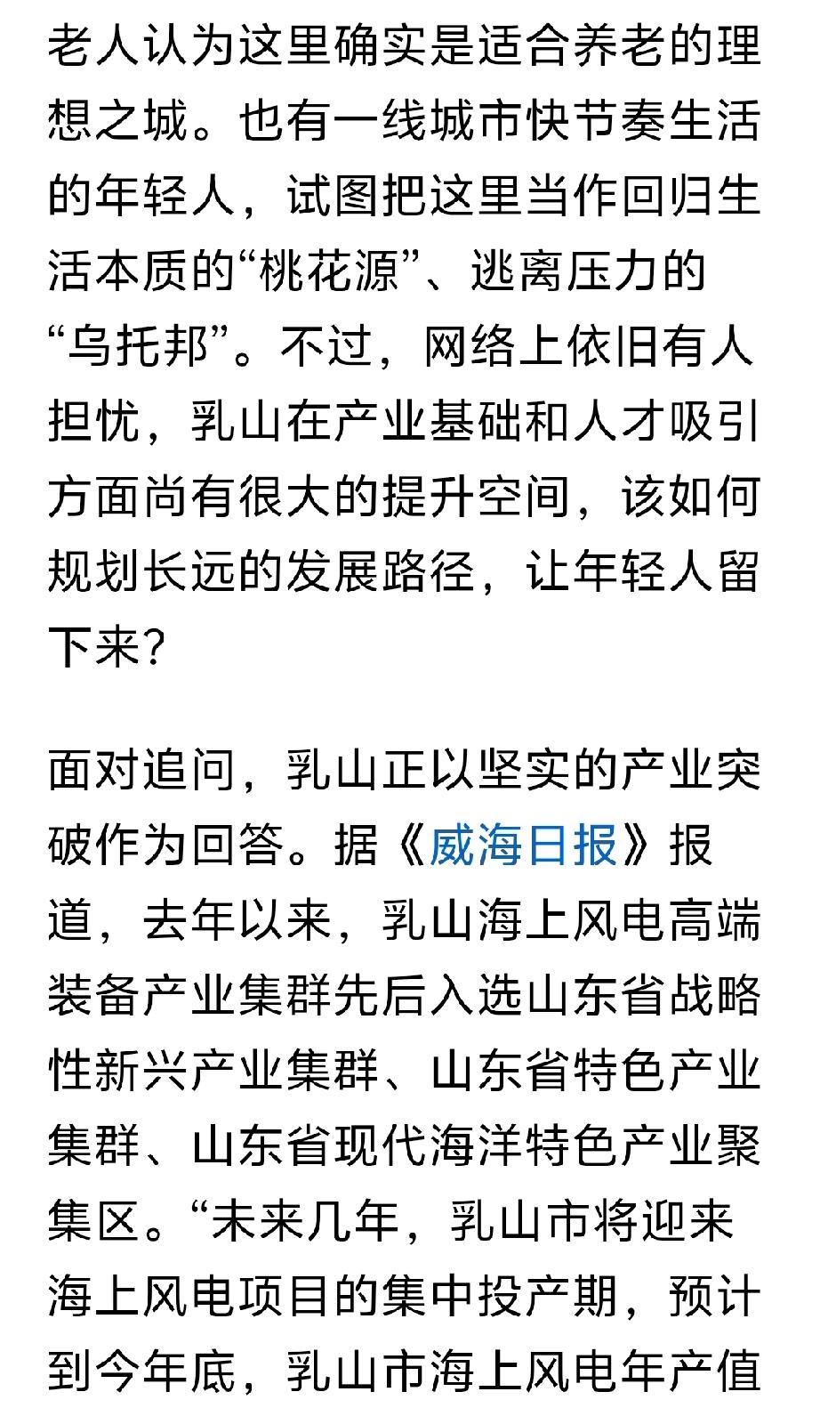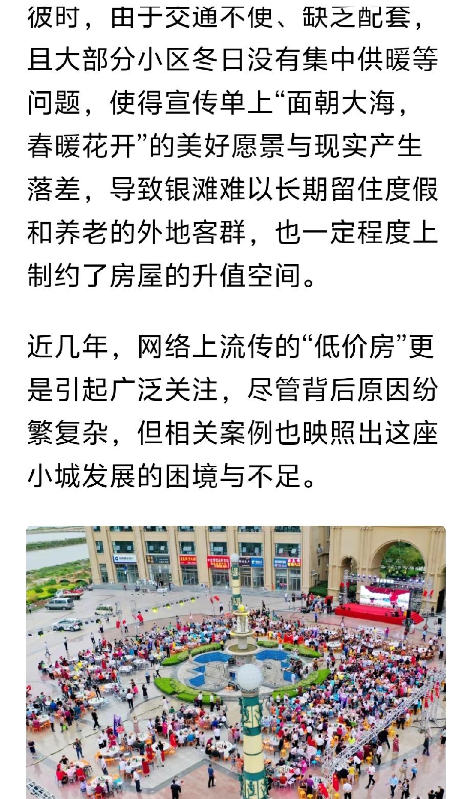 这篇文章是澎湃记者,采访乳山银滩的专题的文章,全方位正确对乳山银滩的报道。 文章从多个方面介绍乳山银滩,从最初的“诗和远方”的海景房到老年看房团,一元法拍房。从海边养殖区私搭乱建到海岸线的生态修复和整治。从银滩海景房最初规划不完善到医疗,交通,公共配套的逐渐完善。从年轻人的“乌托帮”到海上风力发电对人才的需求。从怎么样让银发老年人在银滩过的更舒心等等,多方面全方位的对乳山银滩正确客观的评价。乳山银滩 秋日生活打卡