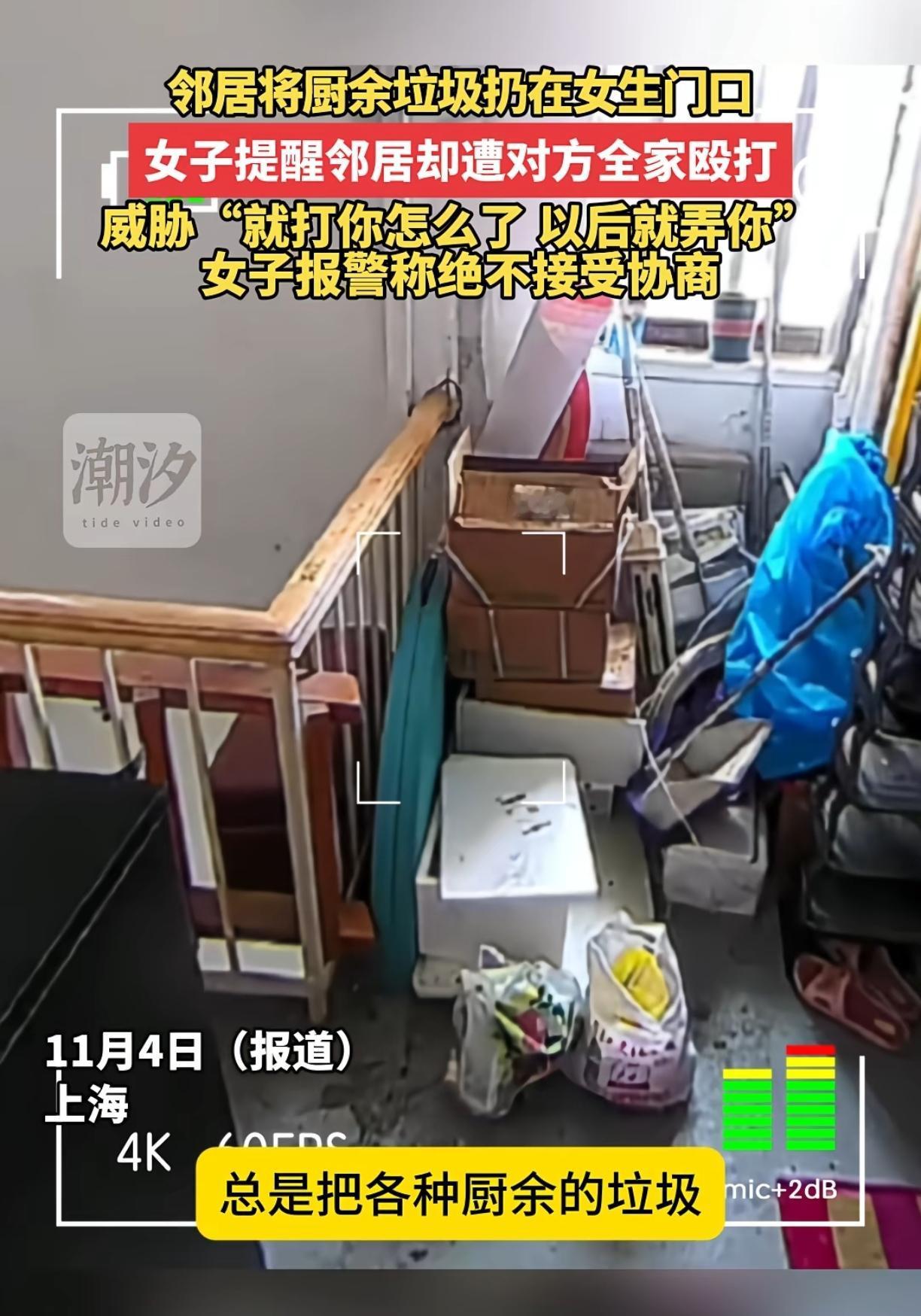 上海恶邻殴打女子,就连警察叔叔来了都不怕,在叔叔背后直接给了女孩一脚,将女子踢的重重摔倒在地,一家人在得知门上有监控,老人儿子带头,几人将女子推到监控盲区用棍子da人家,还威xie女孩“打的就是你,打你怎么了,以后就弄你”,这是没有王法了吗? 博主曝光的这个小区是一个老小区,本来楼梯房门口就窄,从监控画面看的到,走廊外面还堆放了那一家老小的杂物,刚好他们家丢垃圾的位置对准了女孩家门口,厨房这些东西本来就容易长虫生味,要是垃圾袋破裂了还🉐流出淌水,容易生味,再者就是膈应人了,对着人家大门口,女孩上门说了,以后不要这样,人家也没错啊,这一家子就是回应人家说等会下楼就丢,或者说下次会注意的,这不就解决了,可谁能想这一家子,老的小的都出来推人家,打人家女孩,就很过分了! 有人说“女孩没有放出完整视频,这真假谁知道呢,谁知道是不是你先动的手”? 女生发的视频都被和谐了,不是没发过,人家能拿出来讲,肯定是不怕的,出门在外谁想去惹事呢? 就这个事情来说,动嘴的部分对错先不讲,动手的部分大家都可以判断,而且很好判断! 你们有遇到过这种不讲理的老人吗?