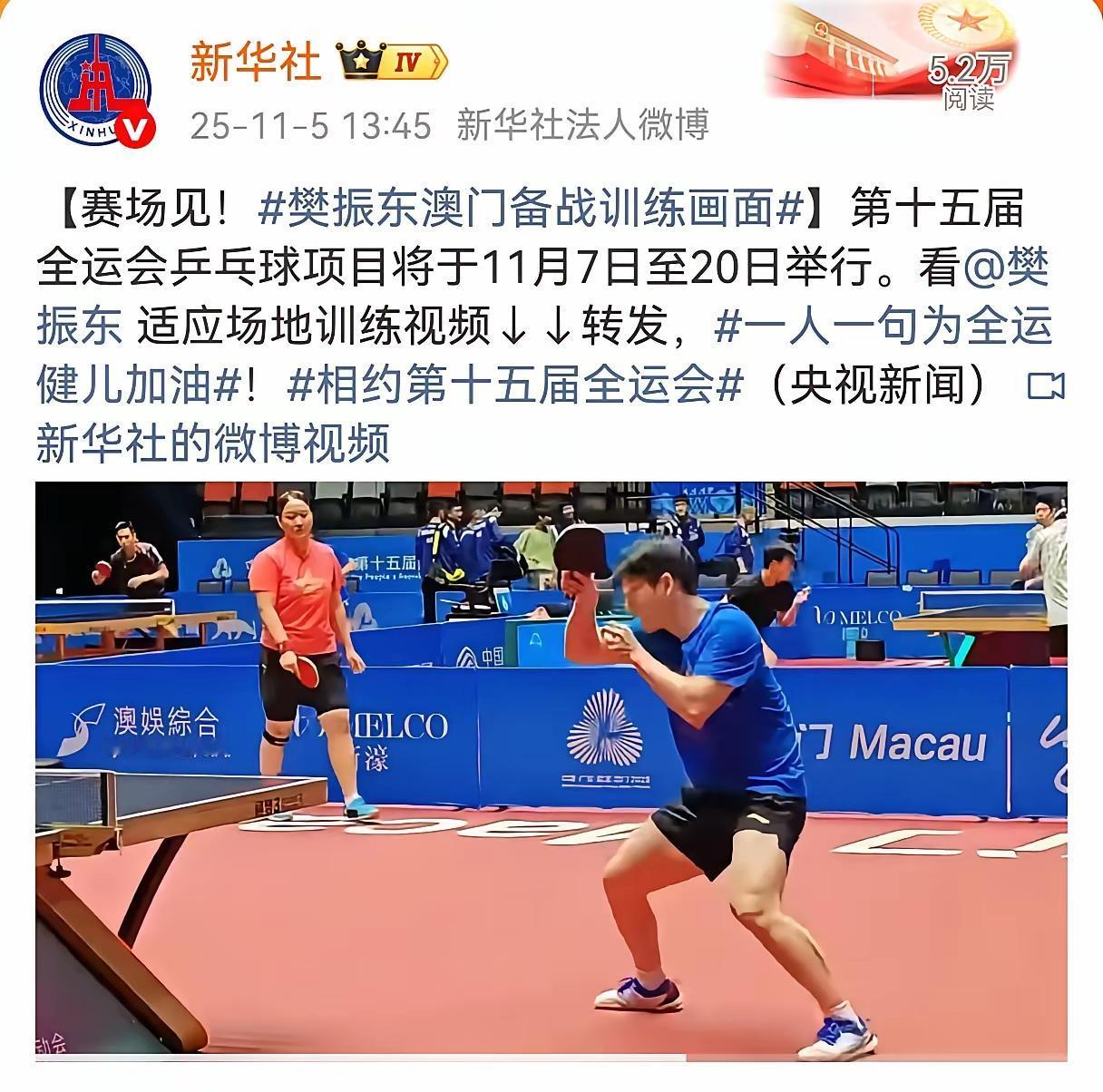 又是李武军![赞] 央视记者李武军连续两天炸网络了,“眼光毒辣”,太牛了![赞][大笑] 昨天早上李记者发莎莎18岁和头哥打混双的“私藏”照片,傍晚就发现李记者在澳门机场和曼昱热聊的照片流了出来。[捂脸] 好嘛,李记者也是嗅觉灵敏,动作迅速,昨天刚到澳门,不知道他怎么又把樊振东在澳门训练适应场地的视频发出来了,真乃记者中的高手。[赞] 更不得了的是,人民日报和新华社纷纷转发了,可见参加全运会的樊振东备受央妈重视,他也成功成为央妈关注参加全运会的第一人。[比心][赞] 当然,更可见李记者太懂、太懂球迷了,不服不行![赞][捂脸][大笑] 樊振东加油,支持你![加油][加油] 全运会