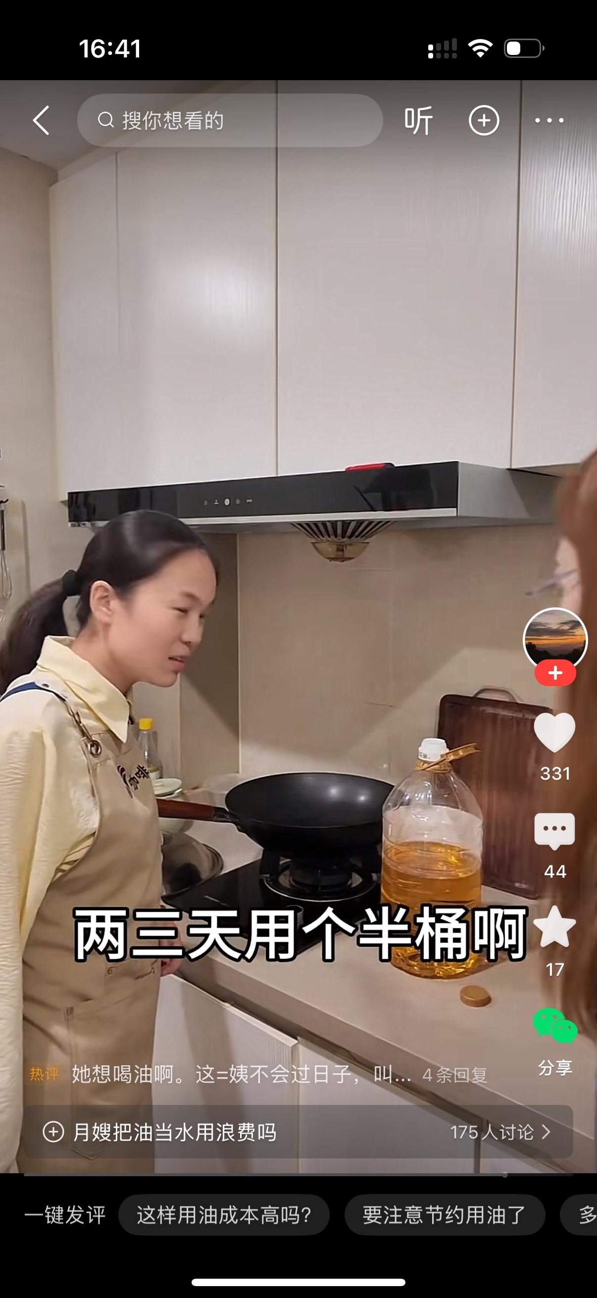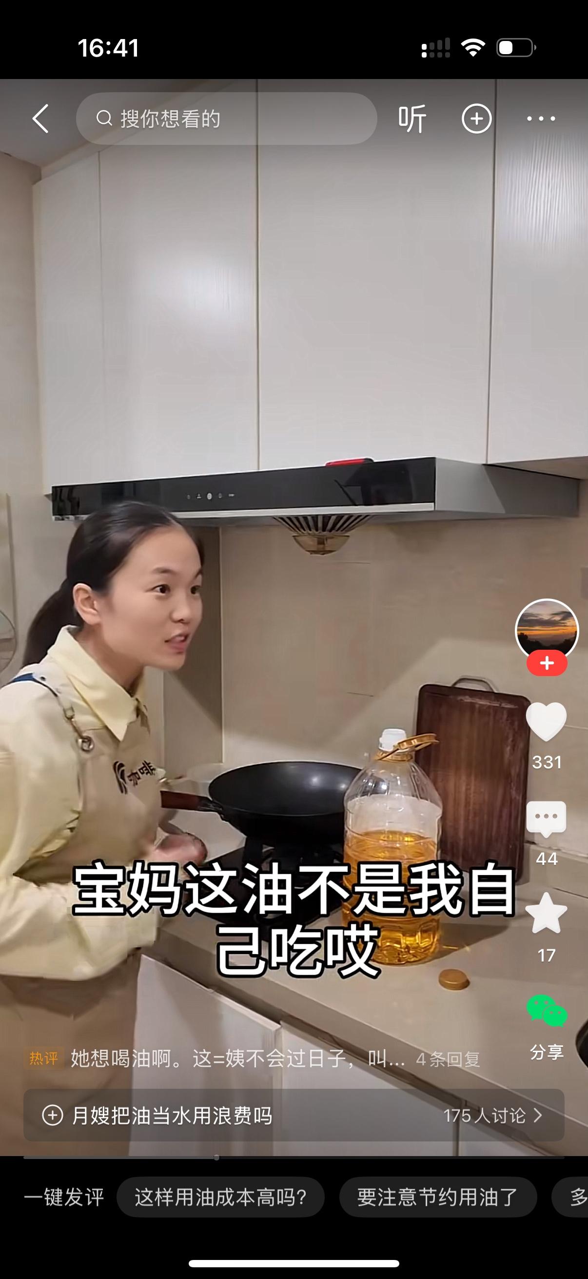 雇主发现保姆两天就用了半桶油,觉得她太浪费了。雇主看到保姆又在倒油,立马叫住她,阿姨,你怎么要用这么多油啊?保姆理所当然,这油又不是我自己吃的,你们全家人都吃哎。况且油多的菜才好吃呀。雇主说,你这个做菜太不科学了。不是炒菜,是在用油泡菜。我不能用你了,你下户吧。保姆心里很不爽,大吼,你未免太小气了吧?用多点油就让我下户。你个穷鬼啊。雇主摇了摇头,哎,你走吧。保姆非常不爽地离开。