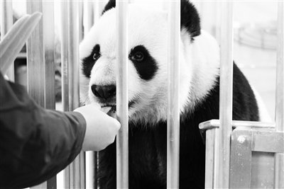 近日,中国大熊猫保护研究中心卧龙神树坪和都江堰基地的13只熊猫搬入新启用的绵阳基地“新家”,这标志着历时3年建成的中国大熊猫保护研究中心绵阳基地投入试运行,中心在都江堰、卧龙、雅安之外,又添绵阳一座基地。熊猫中心绵阳基地位于四川绵阳科技城新区鼓楼山生态公园,基地建设有50余套环境优美、满足大熊猫饲养要求的大熊猫圈舍。图为饲养员观察大熊猫“苏阳”入住情况。新华社发