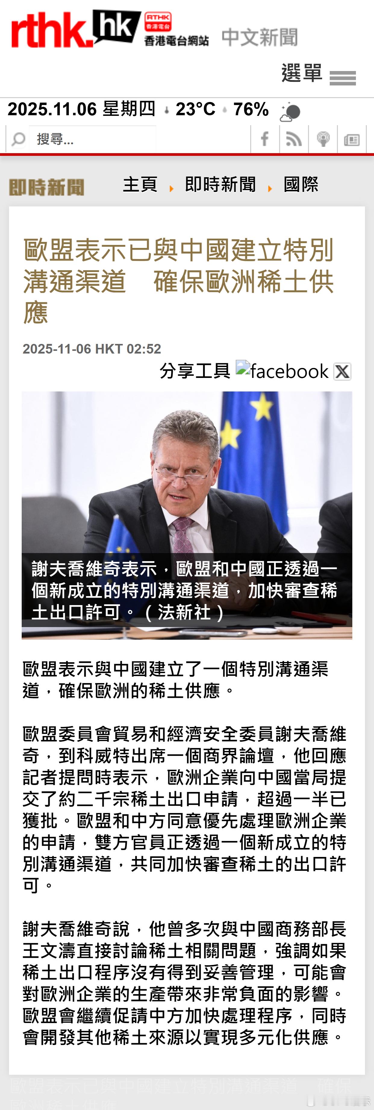 欧盟表示已与中国创建特别沟通渠道 确保欧洲稀土供应