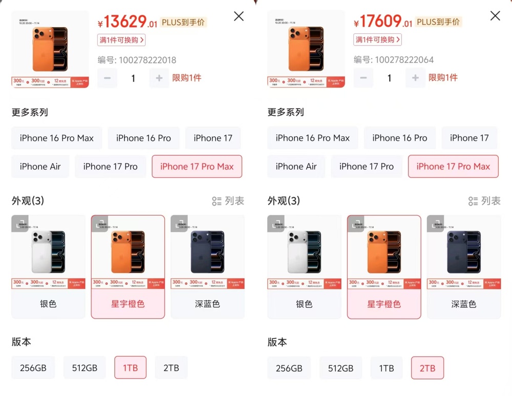 社交媒体上,关于“内存比黄金还疯”的讨论热度在过去一个月居高不下,话题一度冲上微博热搜。“iPhone17ProMax的2TB版本比1TB贵出整整4000块,安卓阵营这边,从256G加到512G,差价也普遍飙升到500-600元。”有消费者在电商平台查价后表示,一夜之间,“存储自由”成了奢侈品。