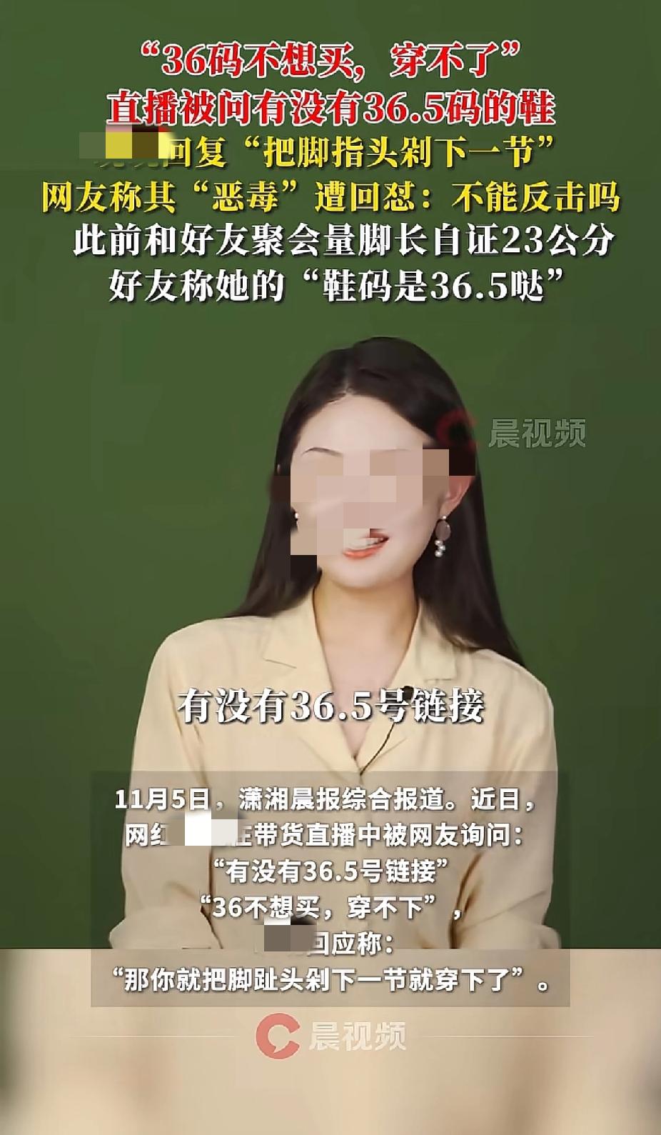 仅仅问一句鞋子是否有36.5码,便被主播回怼“那你把脚趾头剁下一节就穿下了!” 现在的主播真就这么高傲?攒了点粉丝就飘得不知所谓了? 其实这类主播不在少数!为了规避平台检测,有的飙方言暗戳戳骂人,有的用首字母缩写阴阳怪气,还有的直接摆臭脸——这不就是典型的“两副面孔”? 既然连问一句都嫌烦,那干脆别带货啊!需要冲销量的时候,一口一个“家人们”“姐妹们”喊得比谁都亲;等观众多问两句,就立马扣上“恶意提问”的帽子,变脸比翻书还快! 这样的人,平台真的应该加大监管力度了!