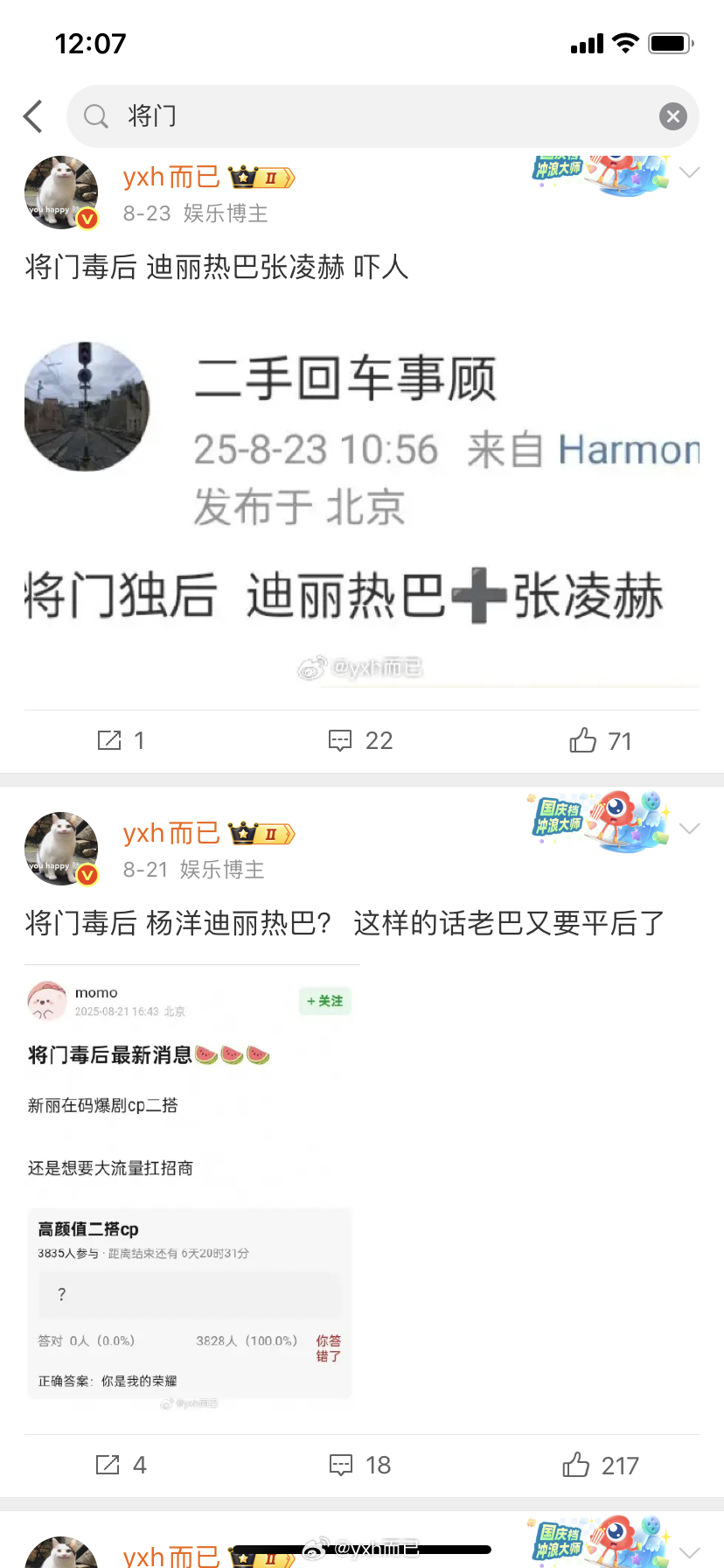 我看了一下将门这饼是在24年3月到新丽之后疯狂遛人,之前在小公司一直没动静没遛过人,猴毛说的22年就在磕王鹤棣应该是把b站粉丝剪辑当了,这饼给线上很多流量生花递了,今年接触最久的是迪丽热巴,窝巴拒了后开始磕王鹤棣也就这几个月,猴毛说得新丽磕三年更是无稽之谈,因为版权要到期了,应该就是明年三月之前,猴毛接前永拒,接后为了吹天选说死磕三年……最看不惯的是自己接了还要呼吁粉丝来撕女主的饼