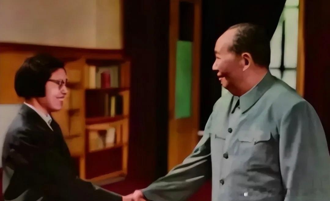 一次,在会见外宾结束后,王海容笑着对毛主席说,毛主席和很多人都有握手的照片,可她还没有,要不他们也握一次手吧!毛主席笑意盈盈的点点头,那就握一次。如此,才留下了这张珍贵的照片。