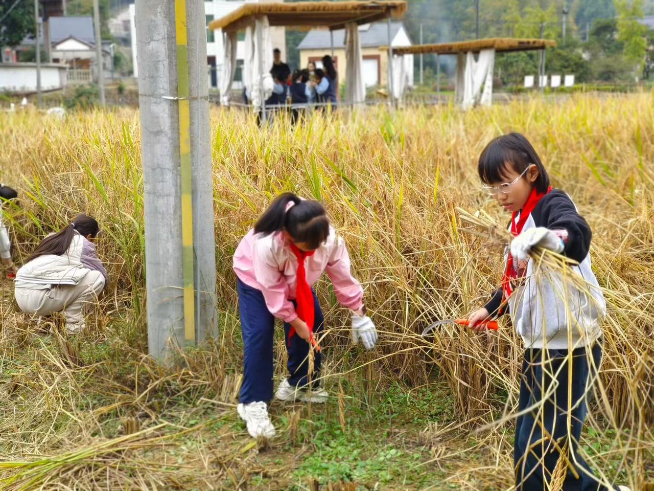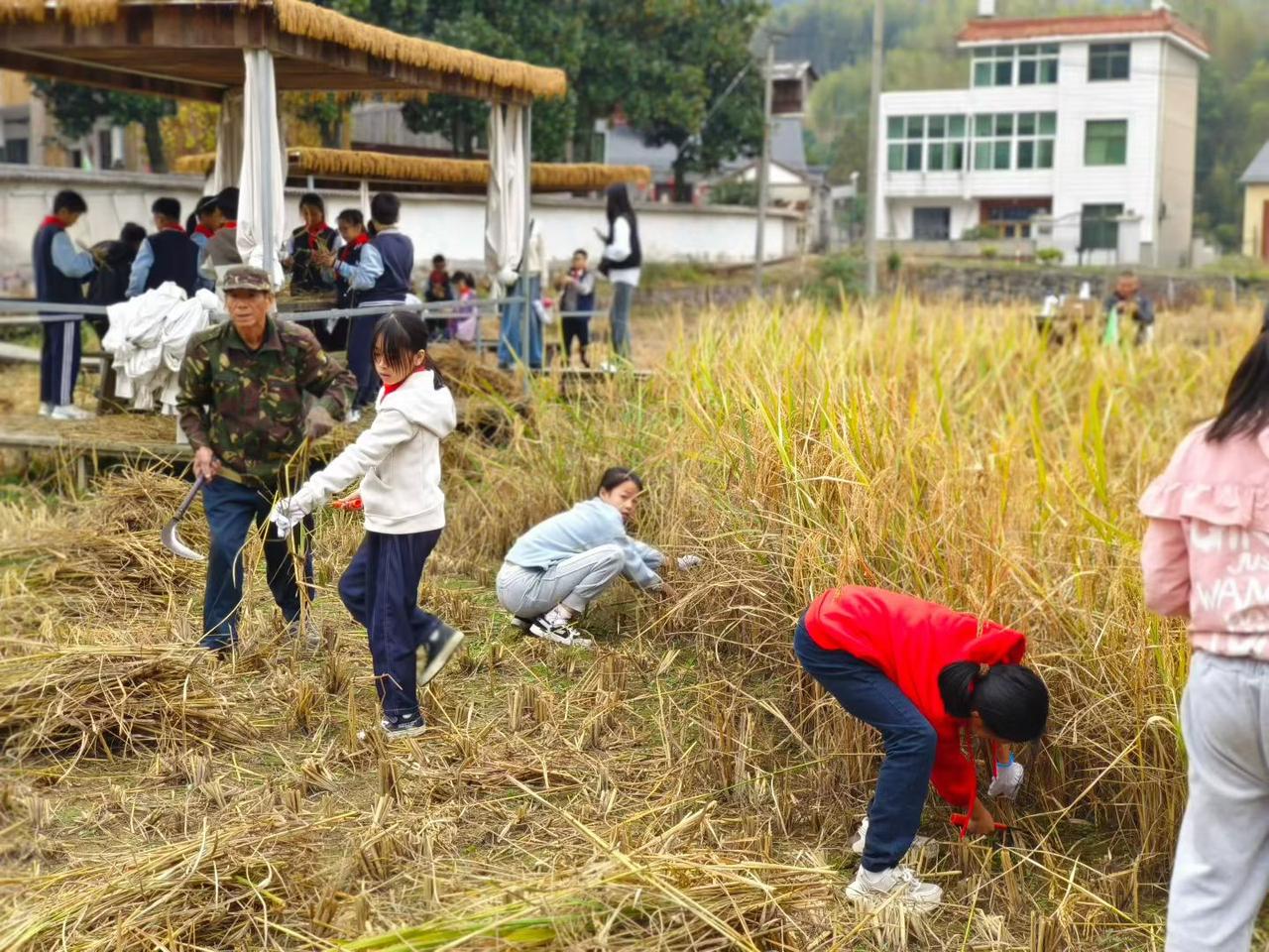 生活体验之割稻 以前我们小时候的生活日常,最害怕爸爸妈妈要我们去割稻子、捡稻穗;到了现在,这些都成了小朋友们的“体验生活”了,做父母的千方百计争取时间、找机会让小朋友们去“体验”,看小朋友们的神情都是挺“乐呵乐呵”的。 生活也真是“此一时彼一时”,我们那时候除了吃穿不够富裕,做完了家庭作业就是上山、下溪、跑田间地头,连课间15分钟都没落下疯狂;而现在的小朋友们呢,不愁吃穿就缺玩的时间,周一到周五,白天上学晚上作业班集中做作业,到了星期六星期天去培训班“加班”,几乎每天都是起早落夜,“鸡叫出门、鬼叫进门”的,除了书本、作业,根本没时间去“撒野”,这么好的营养条件感觉身体素质还不如我们小时候强! 现在的小朋友可真是不容易!