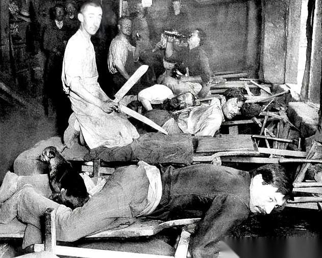 一张老照片,人趴着,狗也趴着。 狗,就那么稳稳地,趴在人的腿上。 你别笑,这不是什么行为艺术。 这是在干活,磨刀。一百多年前的法国,就这么干。 为啥? 因为那时候的机器笨得要死,砂轮全靠水轮带着转。人要是站着干,不出三天,腰就得废掉。 于是工人们自己琢磨出这么个野路子——干脆整个人趴在操作台上,用身体的重量去跟机器死磕。 可车间里又冷又湿,趴久了,下半身都是麻的,血都不流了。 然后,狗就出场了。 那不是宠物。 那是活的暖水袋,是压舱石。 狗的体温,让冰冷的腿能有点知觉。 狗的重量,让发抖的身体能找到一个支点,稳住。 你得知道,那活儿有多悬。 火星子混着铁屑往脸上溅,鼻子里全是铁锈味儿。你得全神贯注,手指压着刀片,一寸一寸地蹭。手稍微一抖,刀废了是小事,脸花了、手指没了是常事。 这不叫艺术,这叫拿命换饭吃。 所以,腿上那几十斤的重量,就是安全感。 就是身家性命的定心丸。 干这行的有个外号,叫“黄肚子”。 铁锈泥浆常年溅在身上,从肚子到裤腿,一片洗不掉的黄。 一条街上,谁家男人是“黄肚子”,一眼就能认出来。 狗也认得出来。 那些狗,甚至不用人招呼。主人一趴下,它自己就熟练地跳上去,找好位置,一动不动。 它好像懂,它趴好了,主人的饭碗才能端稳。 这不是什么温情故事。 说白了,这就是最原始的生存法则。 人把自己变成了机器的一个零件,狗,也成了这套流程里一个有温度的配件。 后来,电机来了,机器能站着操作了。 人,终于站起来了。 狗,也就不再进车间了。 但那些老照片还在。 那个姿势,那种眼神,还有那一把把磨得锋利无比、能照出人影的刀。 那是一代人,用弯下去的脊梁,换来的。
