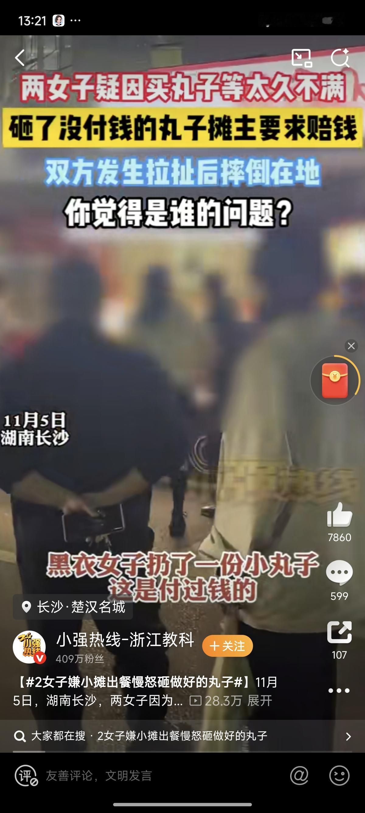 【长沙小吃摊冲突:等太久砸丸子还拉扯老人,这操作太迷了!】 11月5日湖南长沙,俩女子因等章鱼小丸子太久,居然把做好的丸子给砸了!摊主老奶奶出来要赔钱,双方拉扯时还摔倒在地… 更让人揪心的是,摊主儿子说老人脑梗发作,现在还在住院治疗。就因为等餐不耐烦,做出这种冲动举动,真是既不理智又伤人! 大家觉得这事儿谁更理亏?遇到这种情况,你会怎么处理呢?摆摊纠纷 长沙摊贩故事