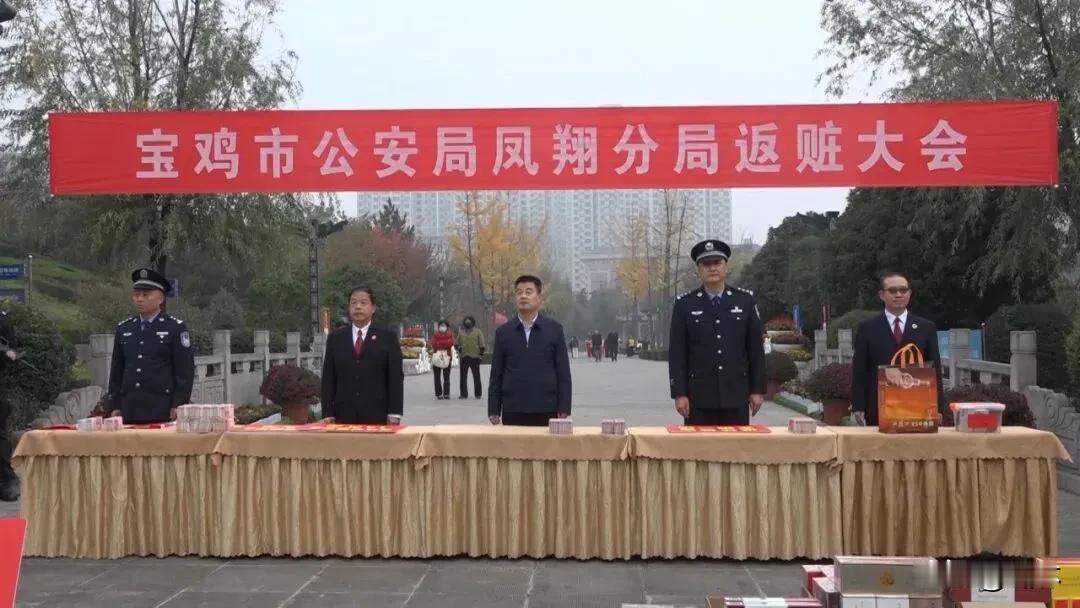 宝鸡警方集中返还赃款赃物100余万元 11月5日,我区举行涉案赃款赃物集中返还大会,为受害群众集中返还价值100余万元的涉案财物,向社会各界和全区人民传递政法机关捍卫公平正义、重拳打击犯罪、维护人民群众利益的坚定决心。 集中返还大会上,公安局负责同志通报了今年的侦查打击工作情况,向群众现场返还了部分追缴的赃款赃物。群众代表现场发言,为民警们送上锦旗表达感激之情。